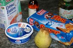 et voila pour clôre mon repas j’ai tenté cette recette et là mes invités après la premiere cuillère ont grimacé car le goût de gorgonzola était assez prononcé – je leur ai proposé de mélanger le tout et soudain le sourire est revenu sur leur visage (ouf !!!!!) – cette association de fromage et poires est très réussie et en + c’est très léger – bravo pour l’originalité !!!!!