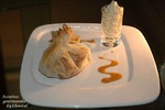 Aumônières aux fruits caramélisés et espumas caramel Bailey’s