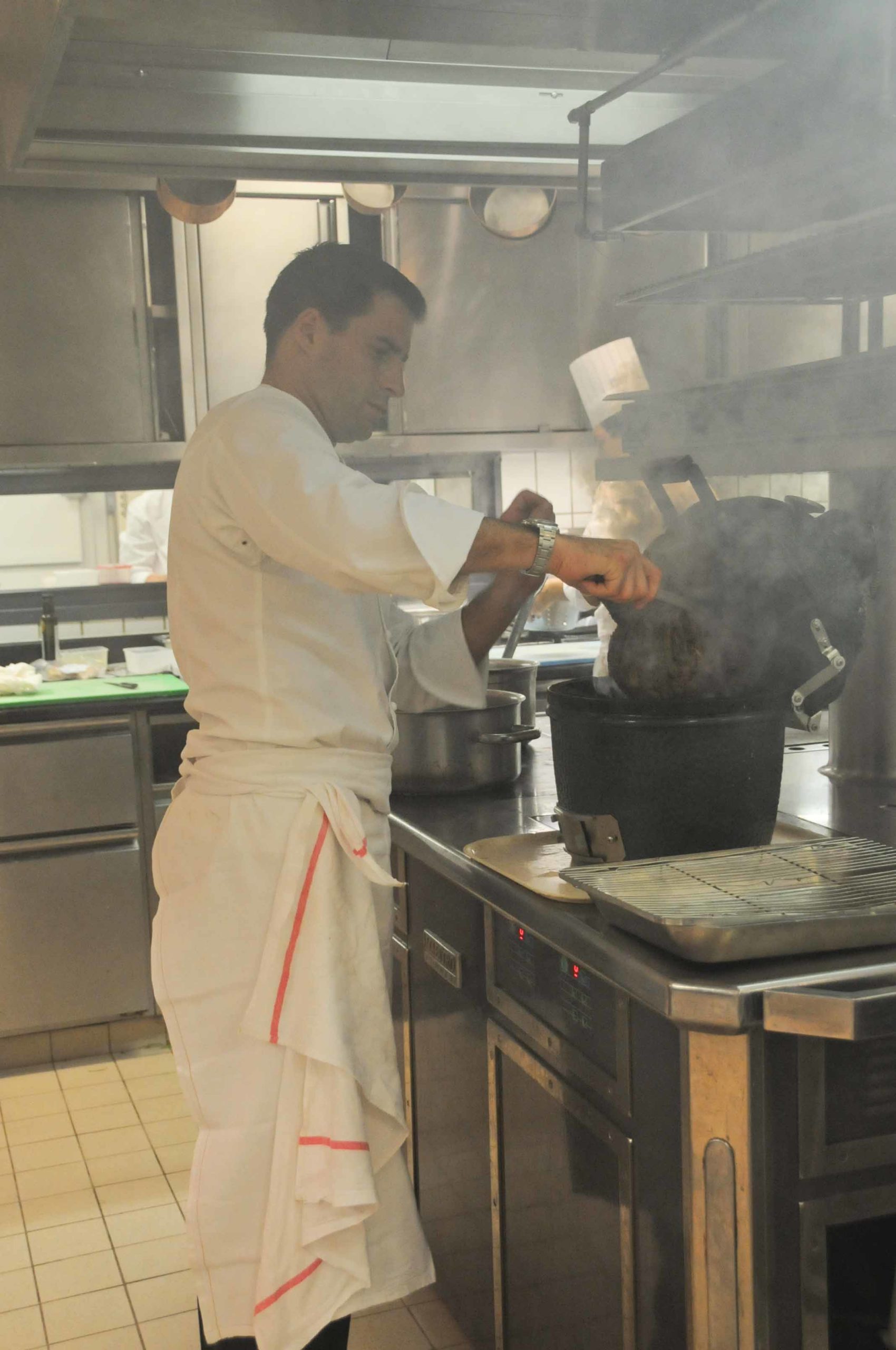 Le barbecue est mis en place, des délicieuses fumées odorantes vont rapidement envahir les cuisines du Crillon: