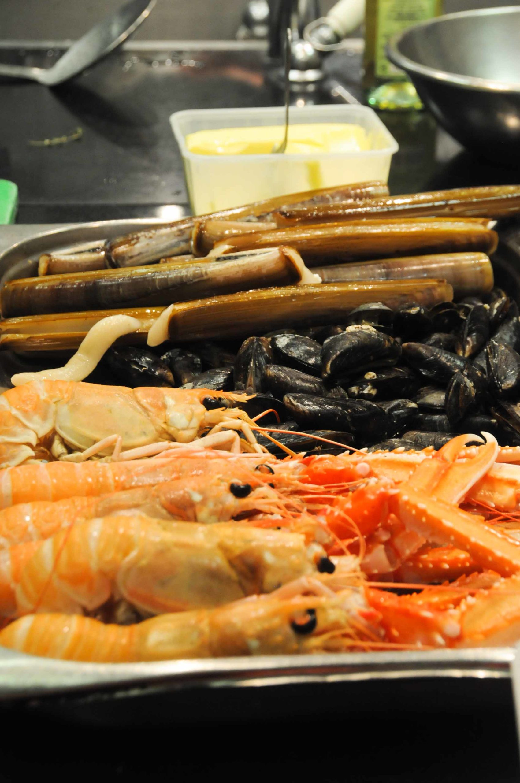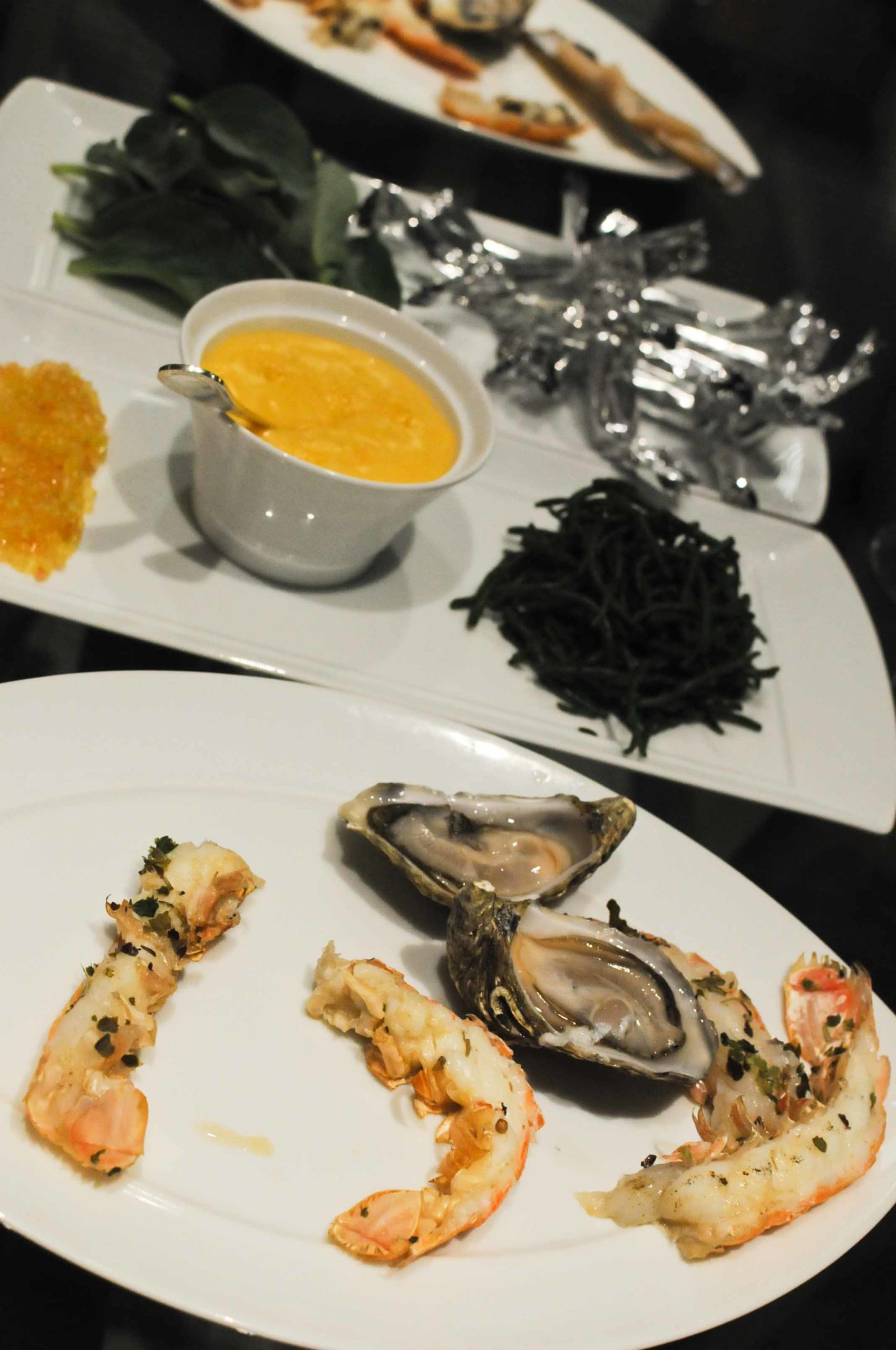 Huîtres et citron caviar, couteaux, langoustines fumées…