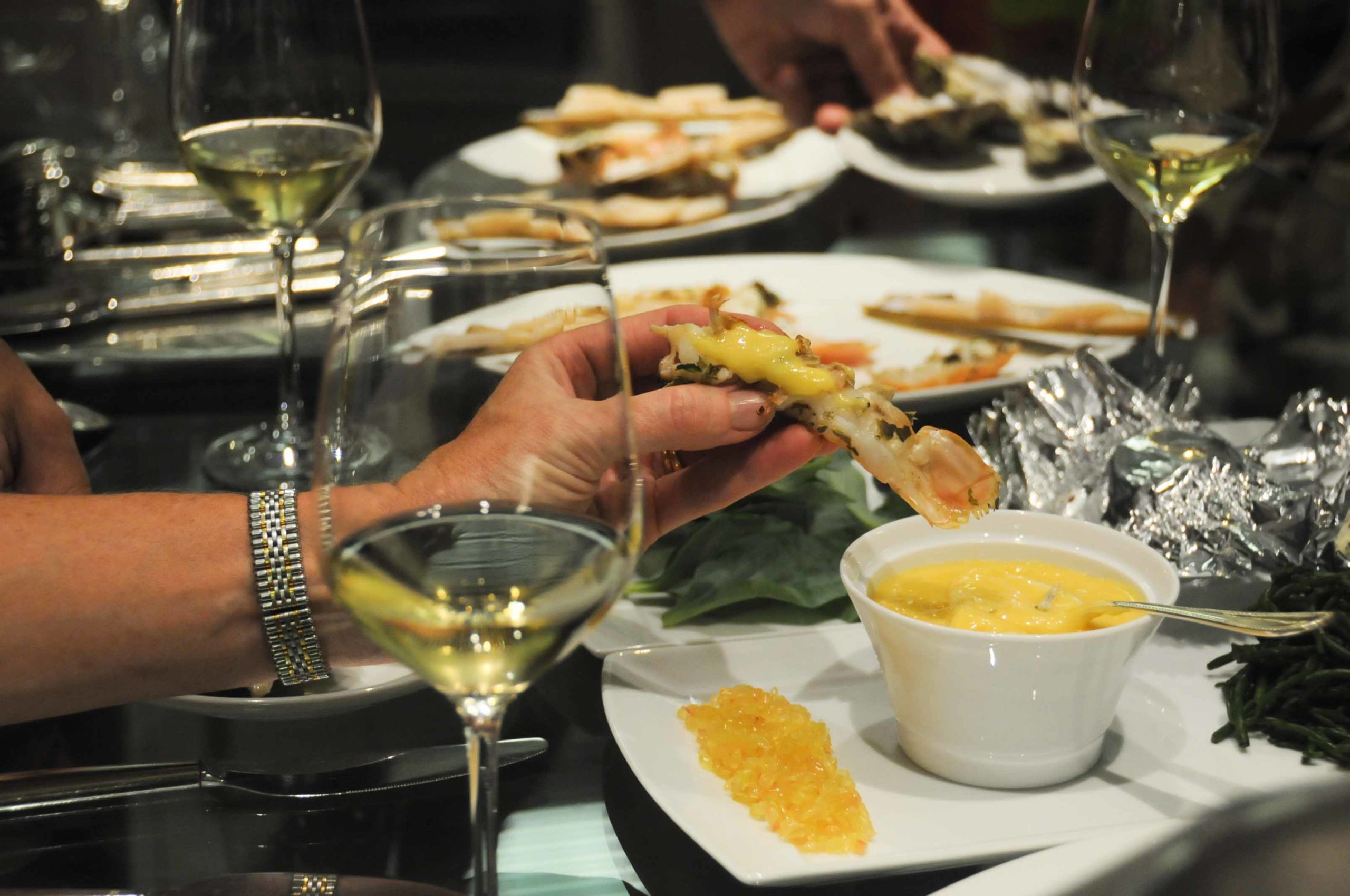 On s’attaque ensuite aux fruits de mer qui serviront de tapas à ce barbecue chic: