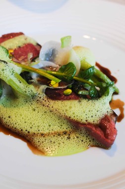 Explosion de saveurs en bouche avec cette association petits pois et framboises; la langoustine est de taille XXL et sa cuisson est sublime. C’est légèrement acidulé, j’ai adoré.