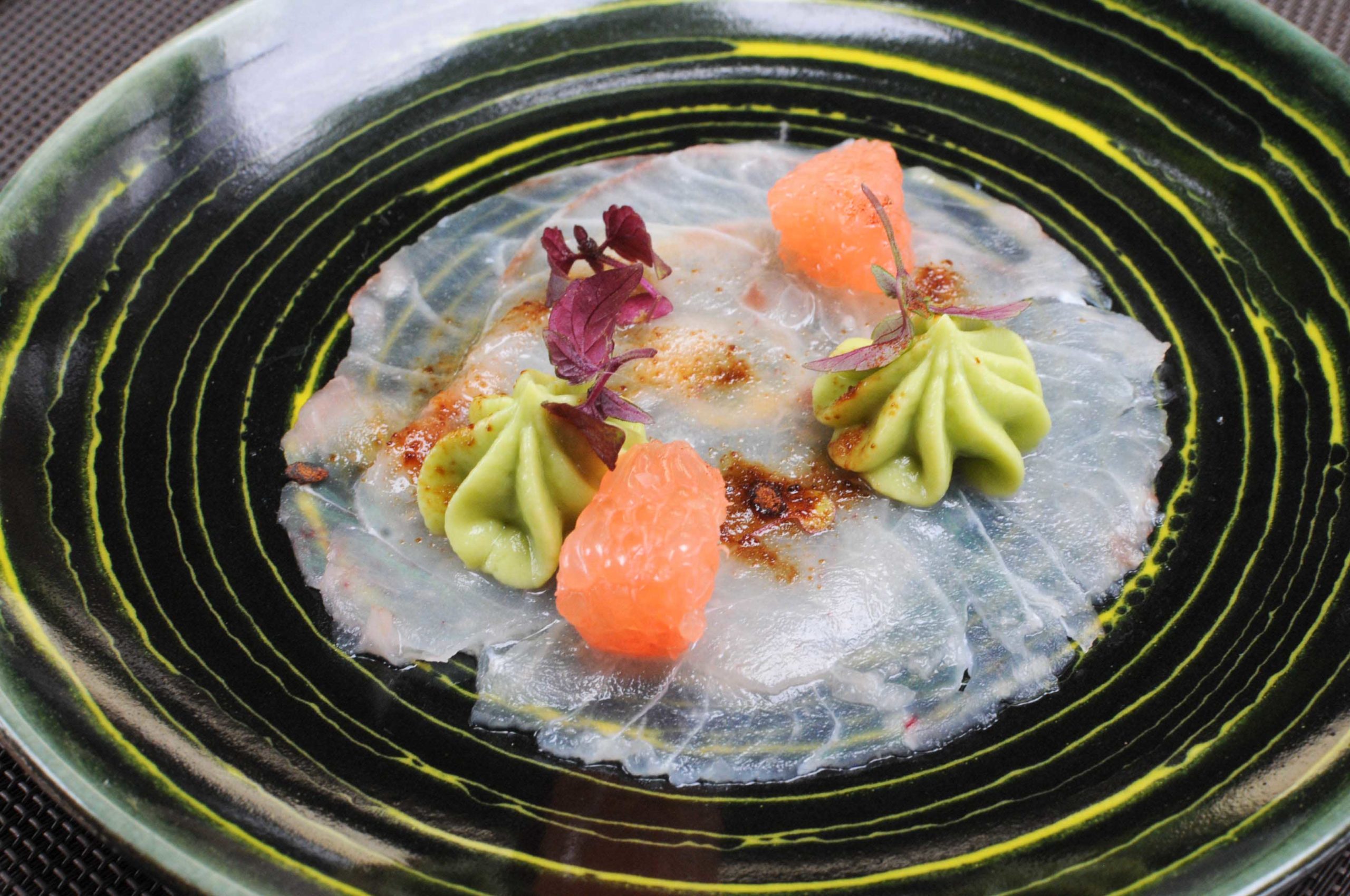 Carpaccio de maigre, crème d’avocat et pamplemousse