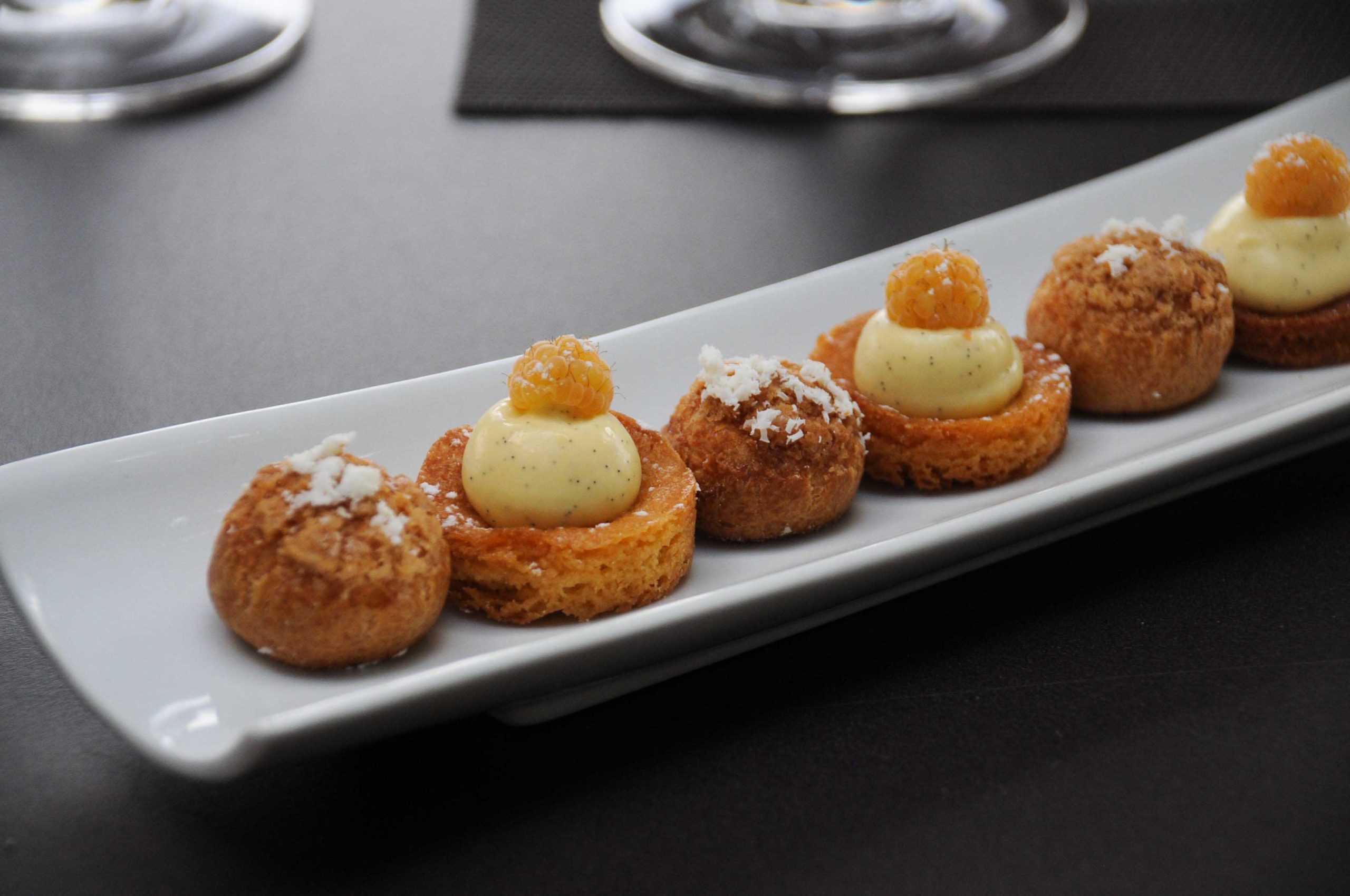 Pour cette première venue, la directrice de l’établissement Réjane Roumy, et les Chefs (ils sont 2 aux fourneaux) David Charrier (ancien de l’Hôtel de Carantec) et Jérôme Cadillat (Crillon, Carré des Feuillants) nous proposent un Menu personnalisé qui reprend plusieurs de leurs réalisations: ça marche!