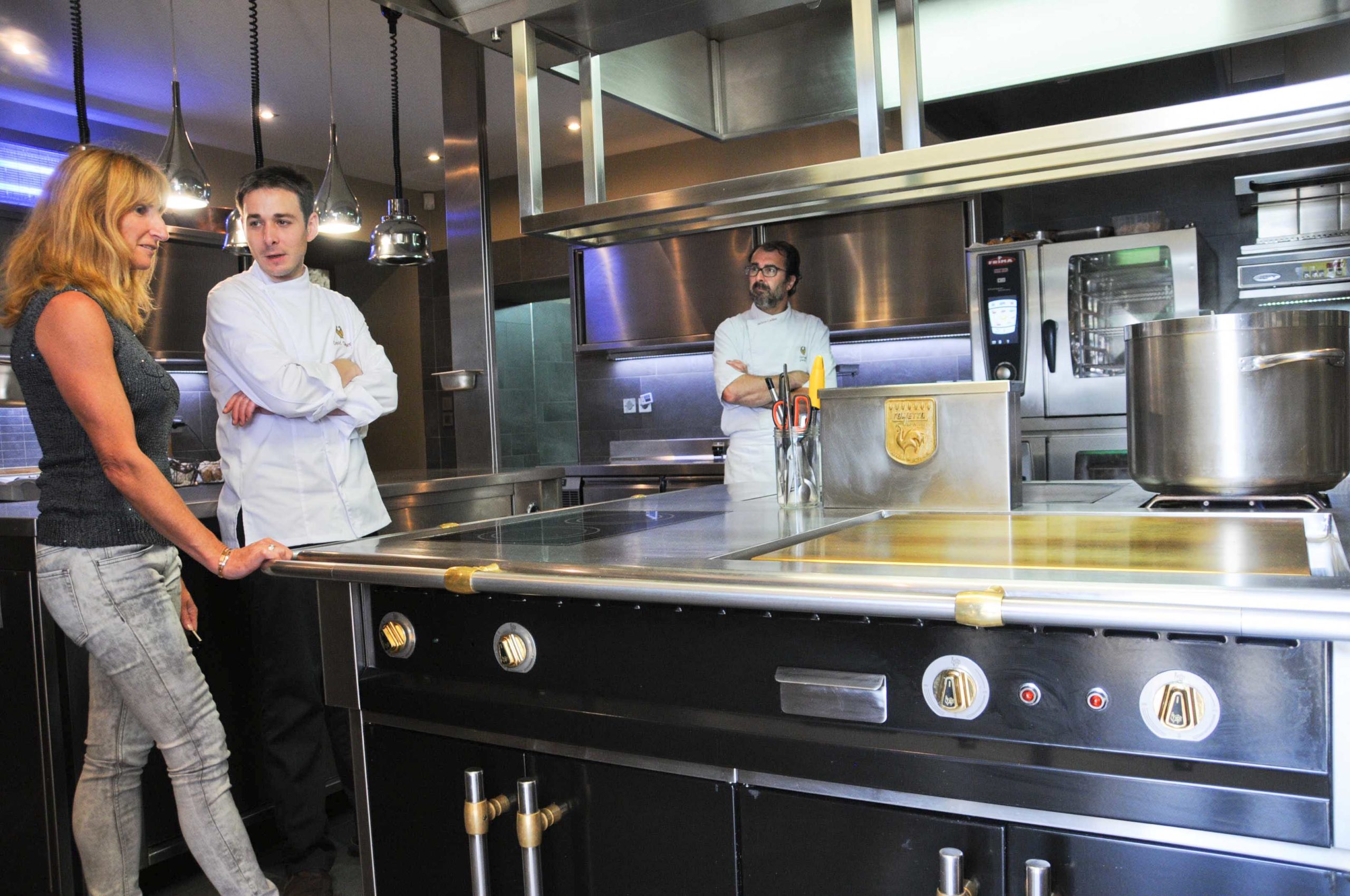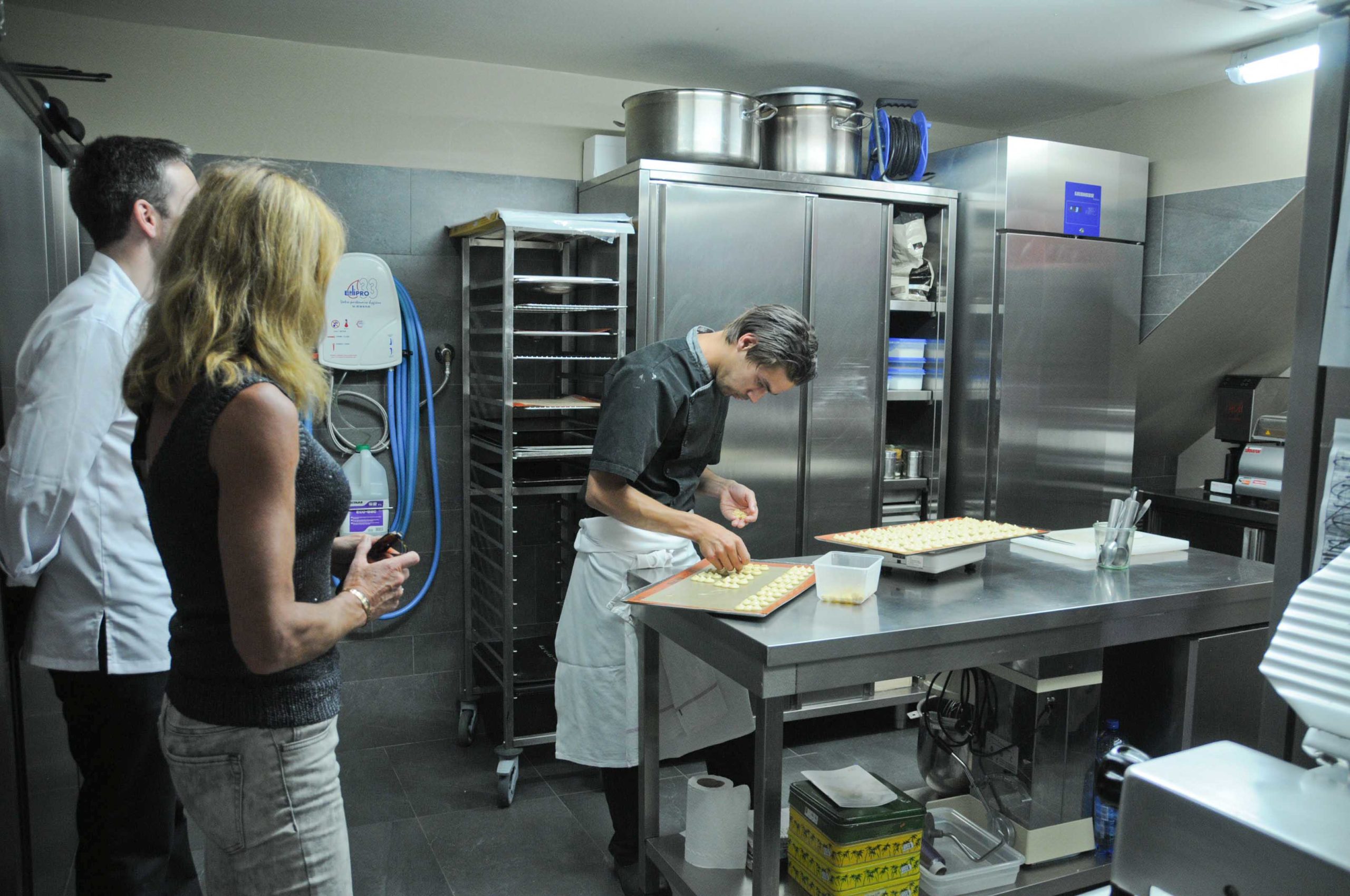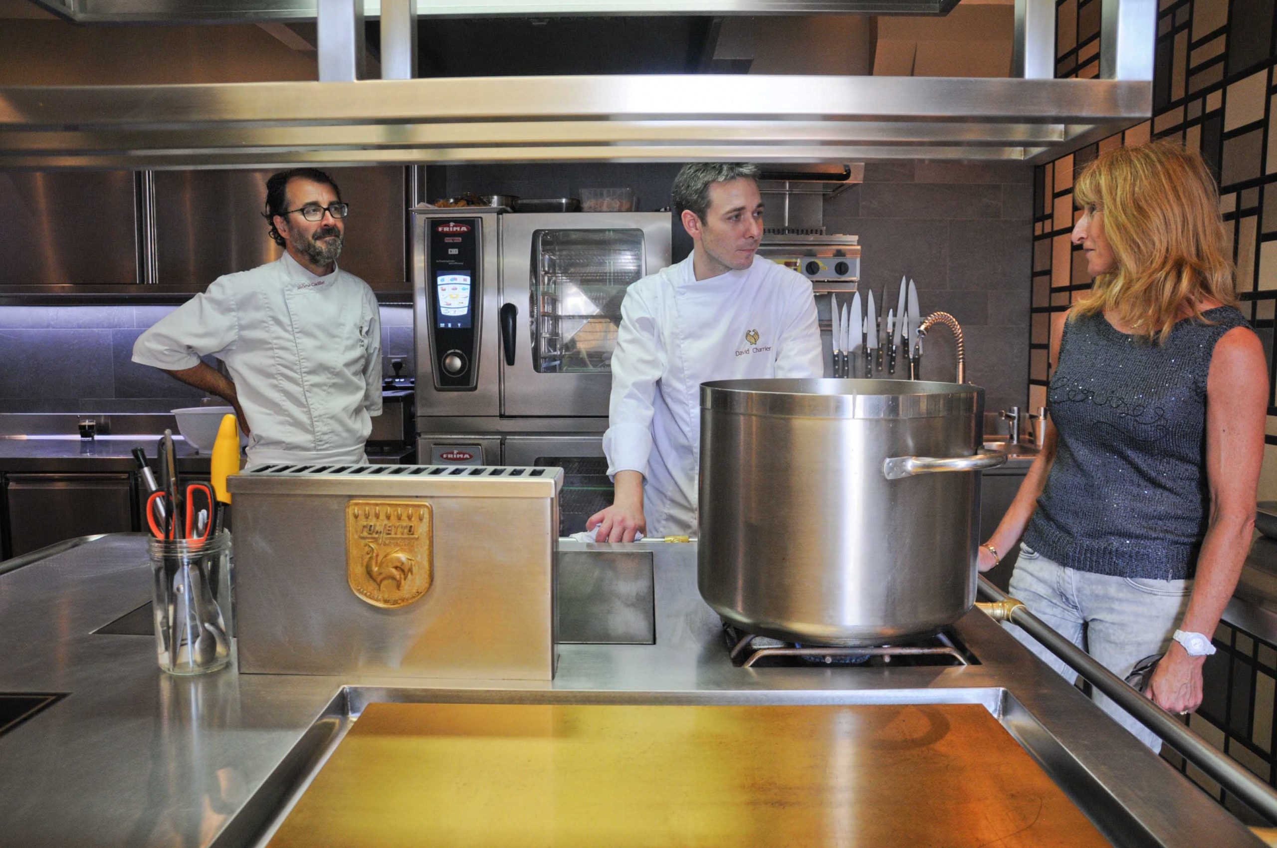 Petite visite en cuisine pour féliciter les Chefs, David et Jérôme, ainsi que le Chef Pâtissier: