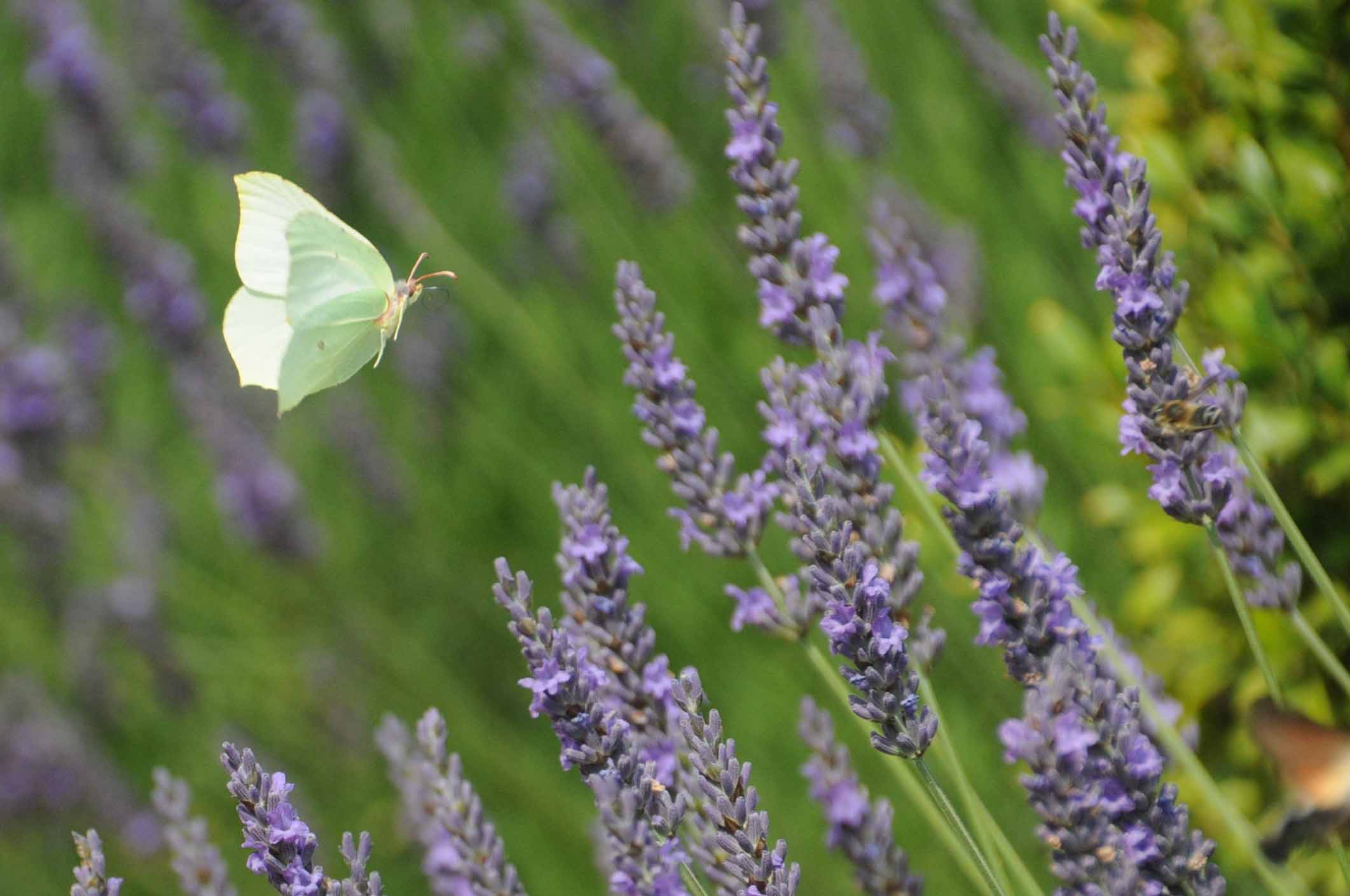 Dernière photo avec les Chefs sur la terrasse, puis on va contempler les papillons qui s’en donnent à coeur joie dans la haie de lavande: