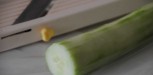 Peler le concombre et couper de très fines lanières dans la longueur à l’aide d’une mandoline.
