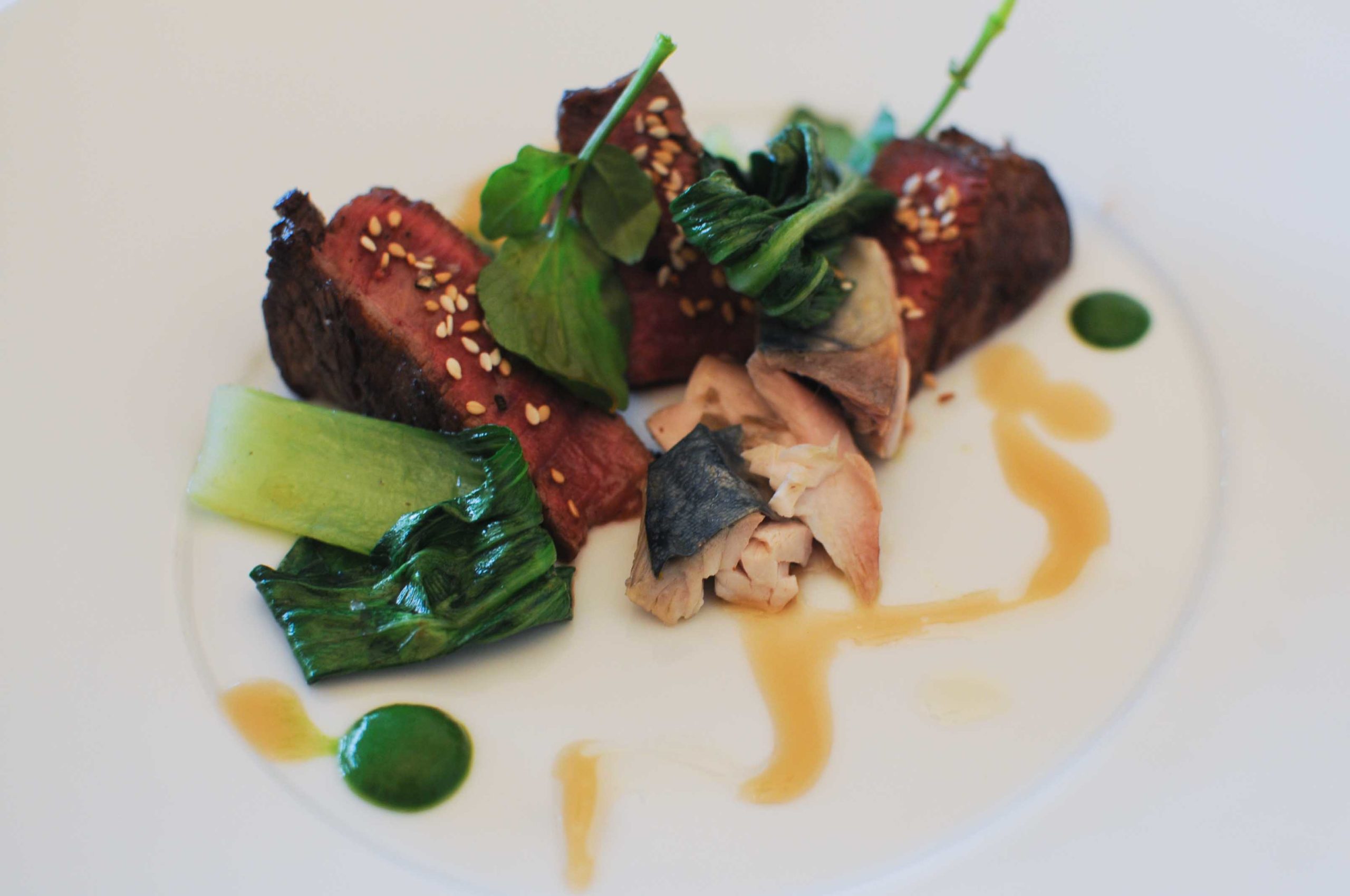 Boeuf de Saône et Loire, filet de maquereau et chou Pakchoy