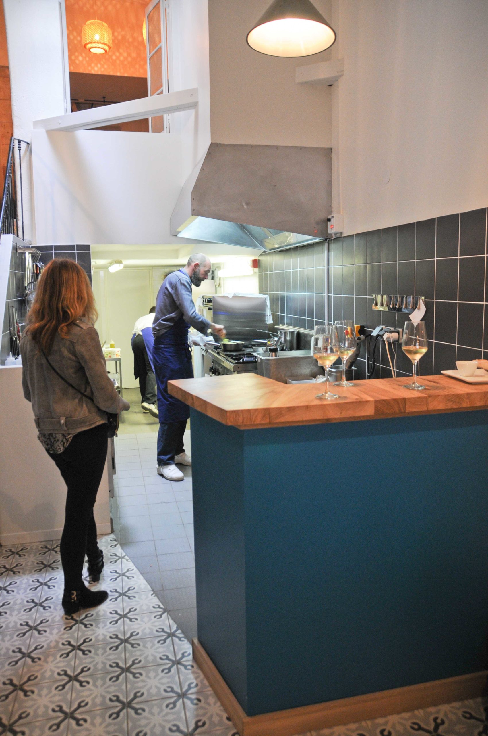 L’intérieur est sobre et chaleureux, on se sent bien, l’espace est très convivial avec la cuisine ouverte au fond du restaurant.