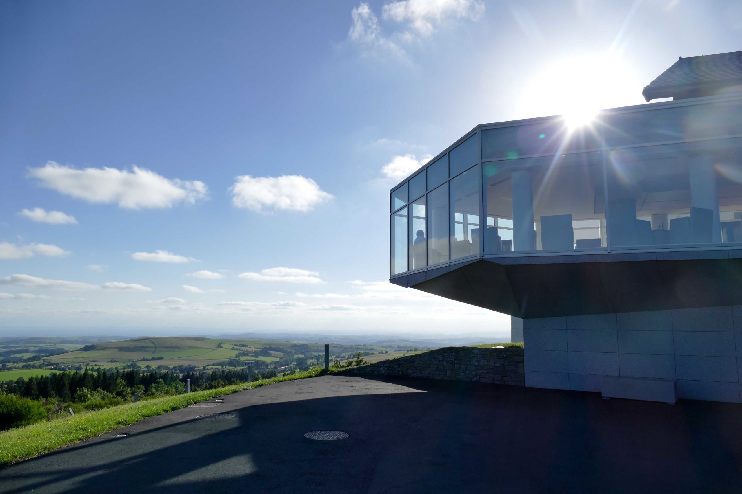 L’apéritif est pris dans le Salon suspendu dominant le plateau de l’Aubrac:
