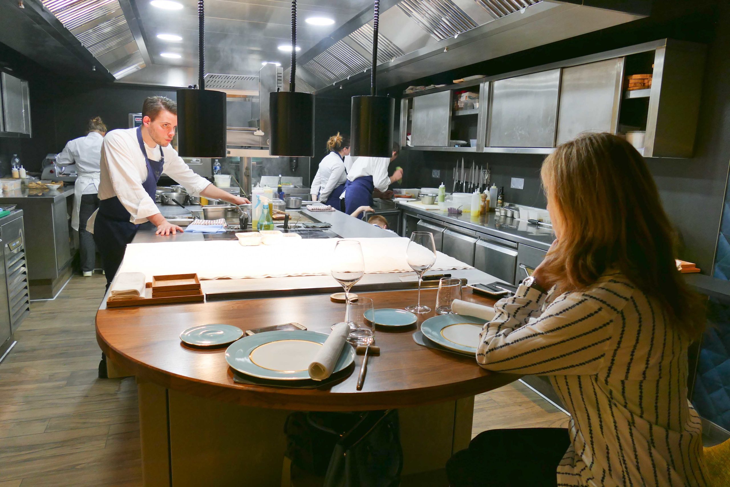 Pour le dîner, nous avons eu la chance d’avoir une table privilégiée, disponible sur réservation: celle en bout de l’ilot central de la cuisine: