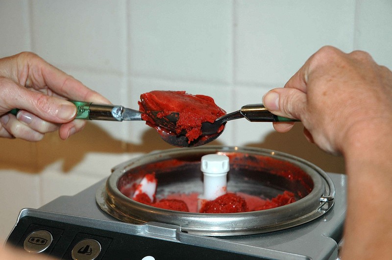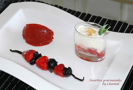sur une gousse de vanille,un sorbet fraises-gingembre-basilic maison et une