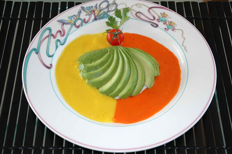 Depuis la présentation à l’assiette a beaucoup évolué, mais je reste fidèle à cette combinaison avocat-poivron où les couleurs autant que les saveurs satisfont les gourmets et gourmands!