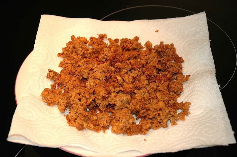 Egoutter pour enlever l’ excès de graisse. (ça doit être bien sec)