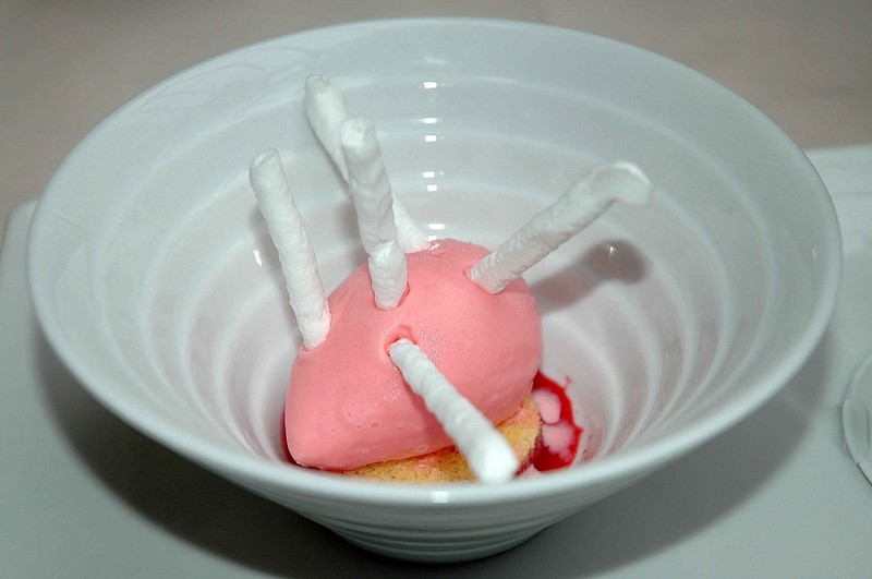 meringue glacée à la rose façon vacherin, sauce légère rose et framboise