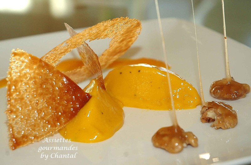 Mélanger la crème anglaise et la purée de potimarron; chinoiser et réserver au frigo.