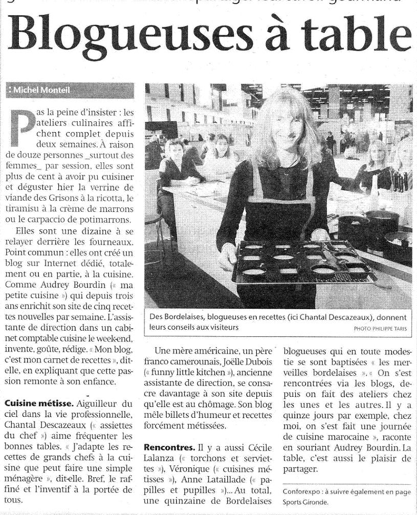 Que voulez vous, quand les bloggeuses bordelaises viennent, ça déplace les foules et la presse; d’ailleurs les ateliers ont été complets hyper vite! Pour l’année prochaine, il faudra peut-être envisager de réquisitionner le Stade de France 🙂