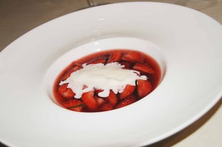 Soupe de fraises parfumée menthe et basilic, glace au gingembre confit: très bon mais très simple pour cette catégorie de restaurant.