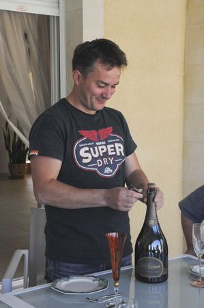 C’était l’occasion de les laisser travailler: Pascal à l’ouverture du champ, et Nicolas à couper le gâteau…