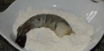 Fariner les gambas sur toutes les faces, plonger dans l’oeuf battu puis enrober de chapelure panko/coriandre.