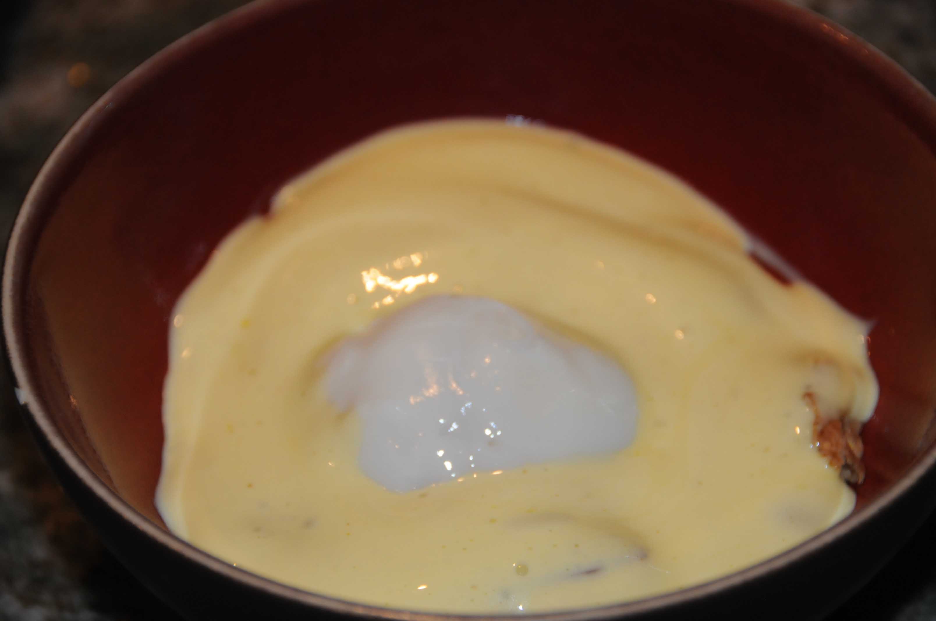 Agiter le siphon et verser la mayonnaise tiède tout autour de l’oeuf. Saupoudrer de piment d’Espelette et de sel de Maldon.