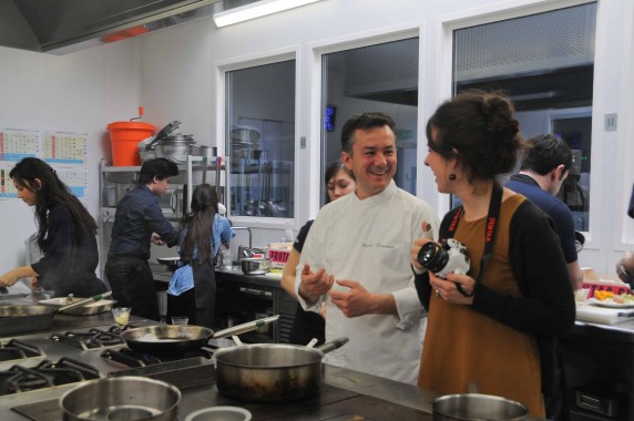 … mais aussi très détendu , car pour une fois, ce n’est pas lui qui a la pression dans les cuisines: