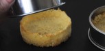 Déposer des cercles à tartelettes sur un papier cuisson; répartir la semoule cuite à l’intérieur des cercles en tassant avec le dos d’une cuillère, faire un rebords comme pour une pâte à tarte.