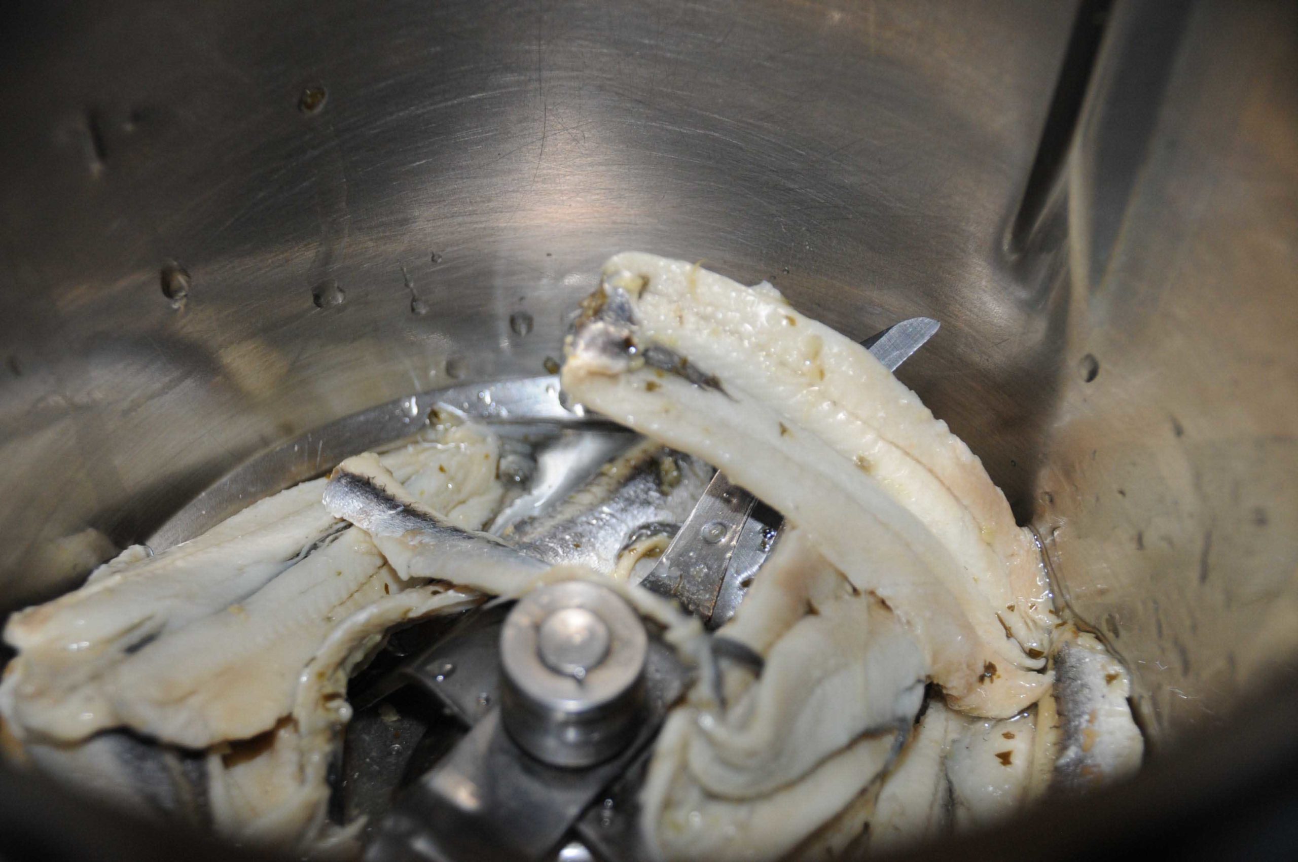 Egoutter les anchois et les mixer avec les gousses d’ail et le vinaigre; ajouter progressivement l’huile d’olive comme pour monter une mayonnaise.