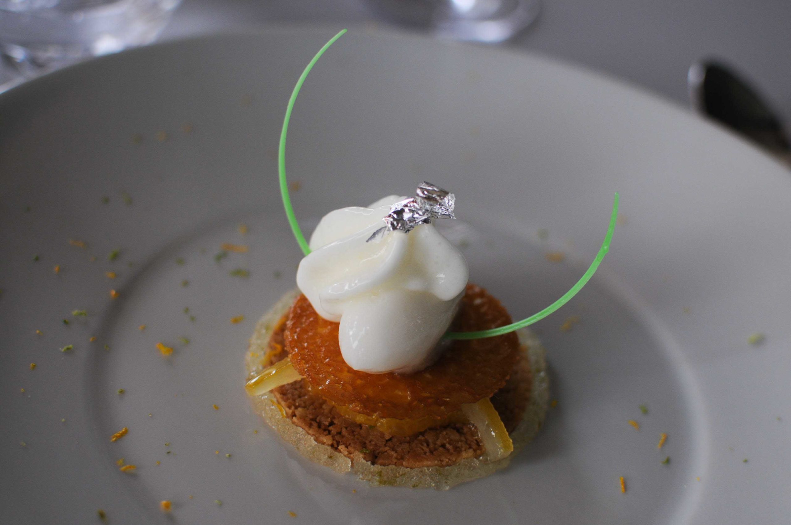 Sablé reconstitué, gelée combawa, citron confit, suprême d’oranges, crémeux orange citron estragon, tuile croustillante citron, sorbet citron vert et espuma pétillant au limoncello… avouez  que ce mélange de textures est complet, c’est à la fois croustillant, fondant, onctueux avec des saveurs acidulées que j’adore en bouche. Très très gourmand.