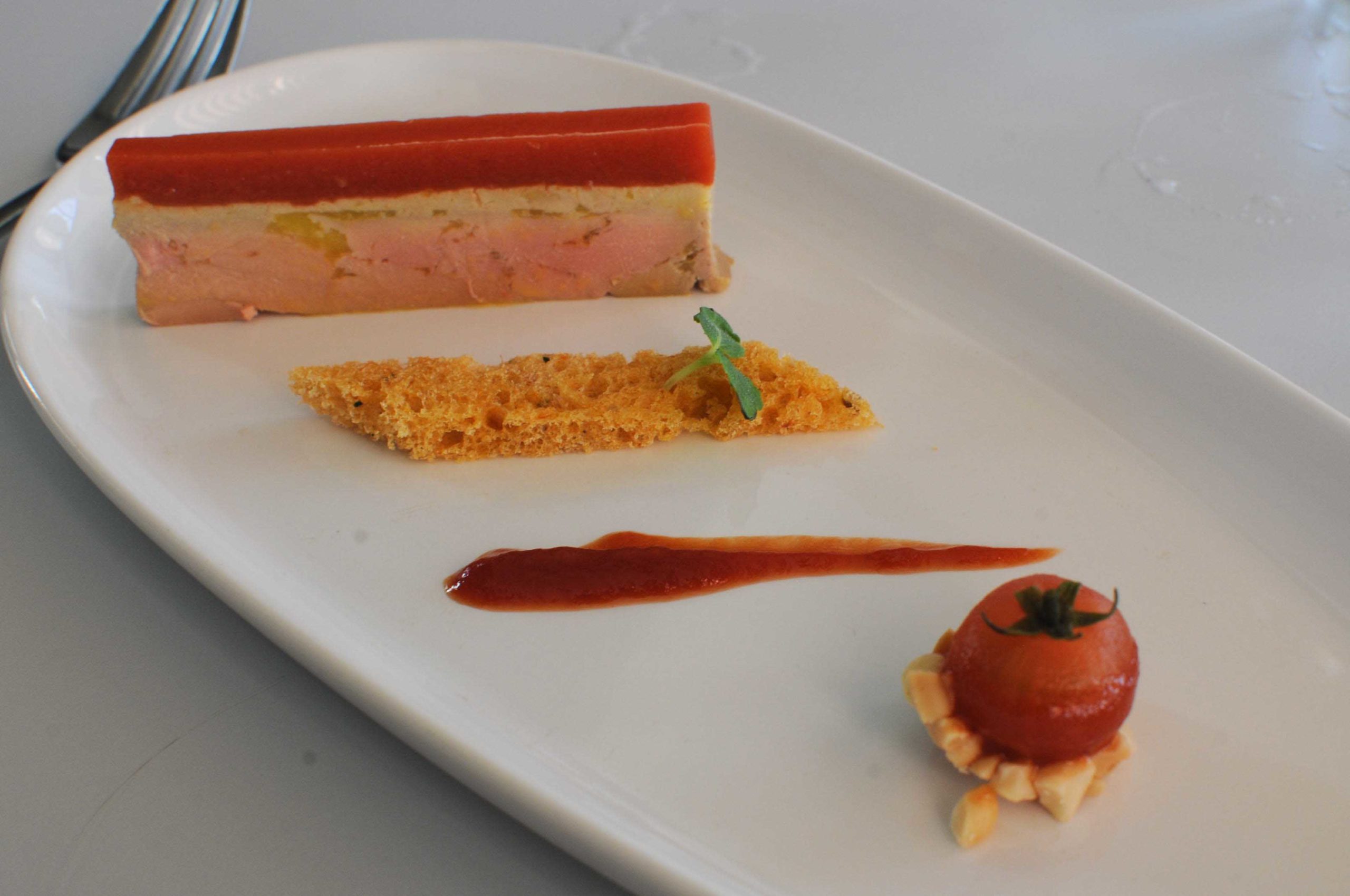 Foie gras fondant à souhaits, gelée à la tomate très onctueuse qui rappelle davantage un condensé de tomate qu’une gelée compacte, tomate cerise caramélisée aux cacahuètes, c’est parfait, rien à redire, on se régale.