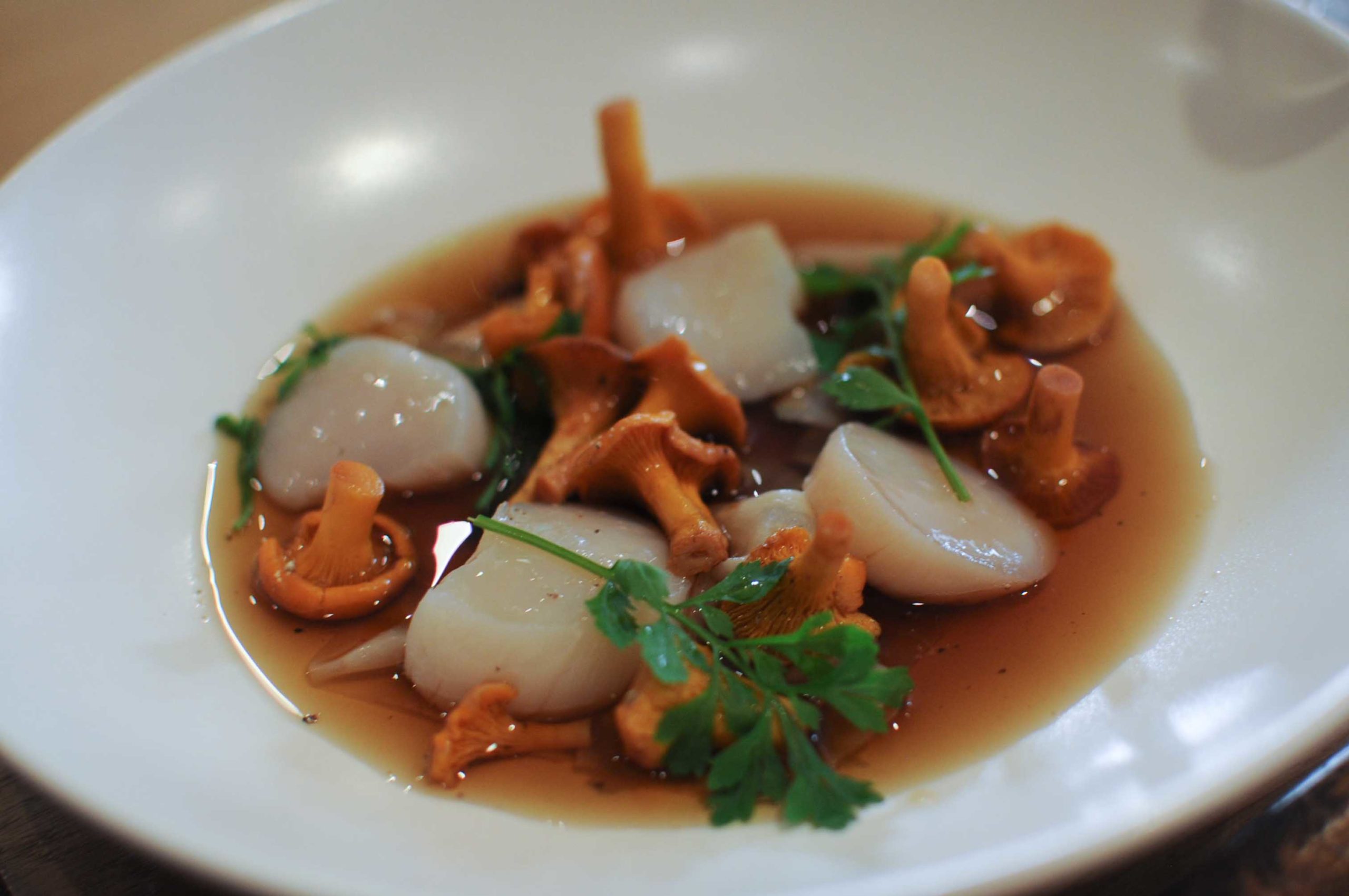Saint-Jacques de la baie de Saint-Brieuc, girolles, céleri, consommé