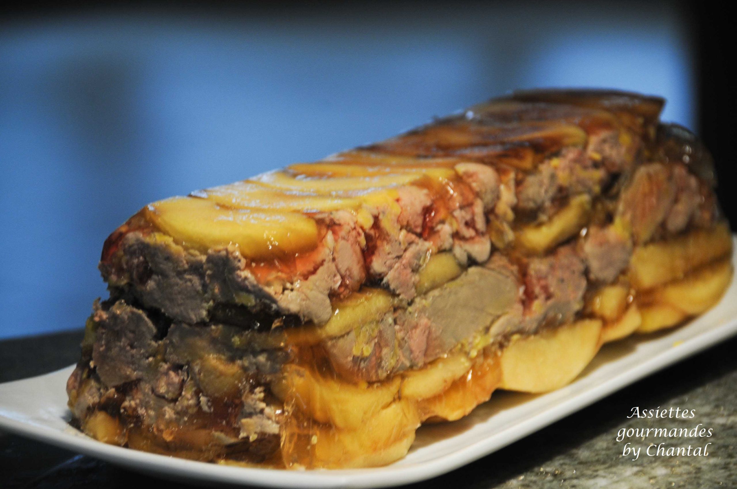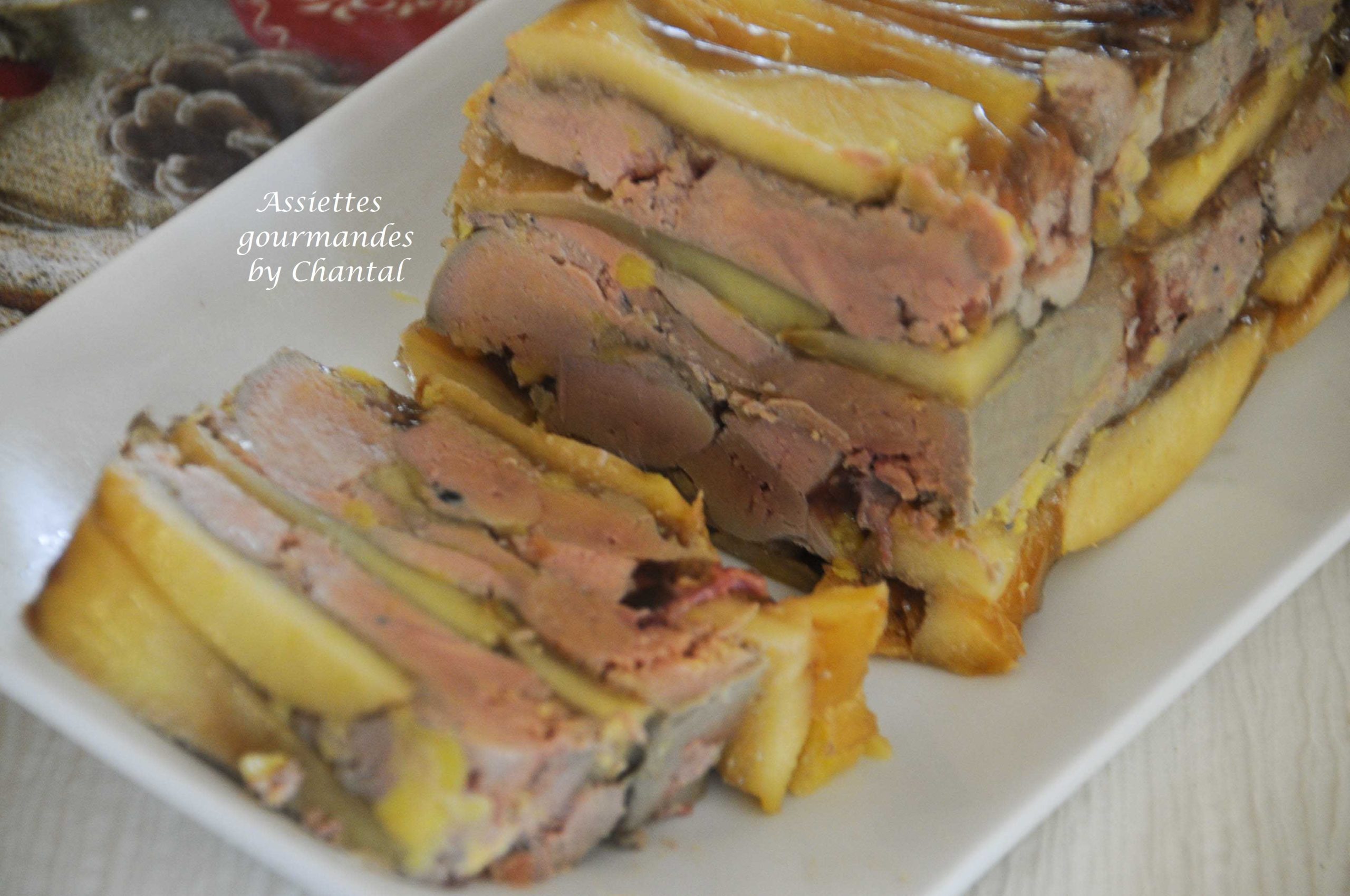 Découper des tranches de foie gras assez épaisses. Déposer des lamelles de pommes au fond d’un moule à cake; superposer des tranches de foie gras mi-cuit, quelques lamelles de pommes caramélisées, et recommencer.
