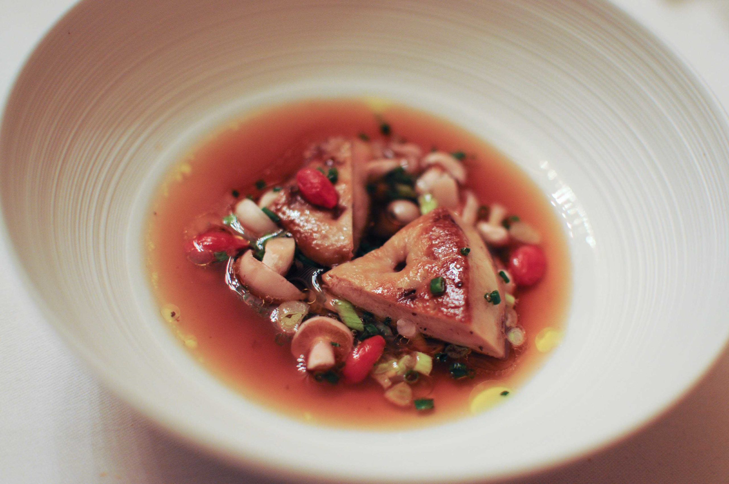 Foie gras poché dans son bouillon parfumé