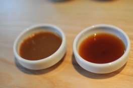 Mes préférés sont incontestablement les dim sum au saumon et au canard, très parfumés, épicés… parfaits. Pour les accompagner, 2 sauces au choix, une à base de sésame et l’autre à base de yuzu…un magnifique voyage pour le palais.