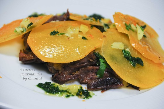 Ces morceaux constituent souvent la base d’un pot au feu, la base de plats de grands-mère braisés, mais on peut aussi les adapter dans une cuisine plus légère et moderne , ici en salade avec quelques parfums asiatiques.