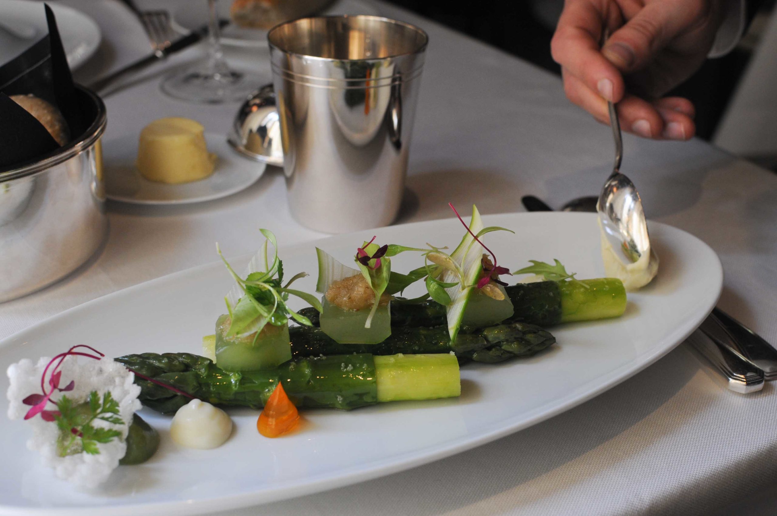 L’asperge verte, vinaigrette yuzu kosho, concombre, huile d’olive