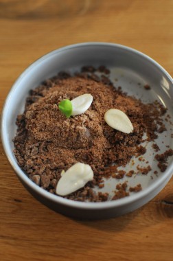 Un subtil mélange végétal, agastache, mélisse, aneth, verveine… est là pour surprendre les papilles au milieu de cette « sauce » tomatée; quelques cacahuètes, une fleur de concombre… une merveille de fraîcheur toute en délicatesse!