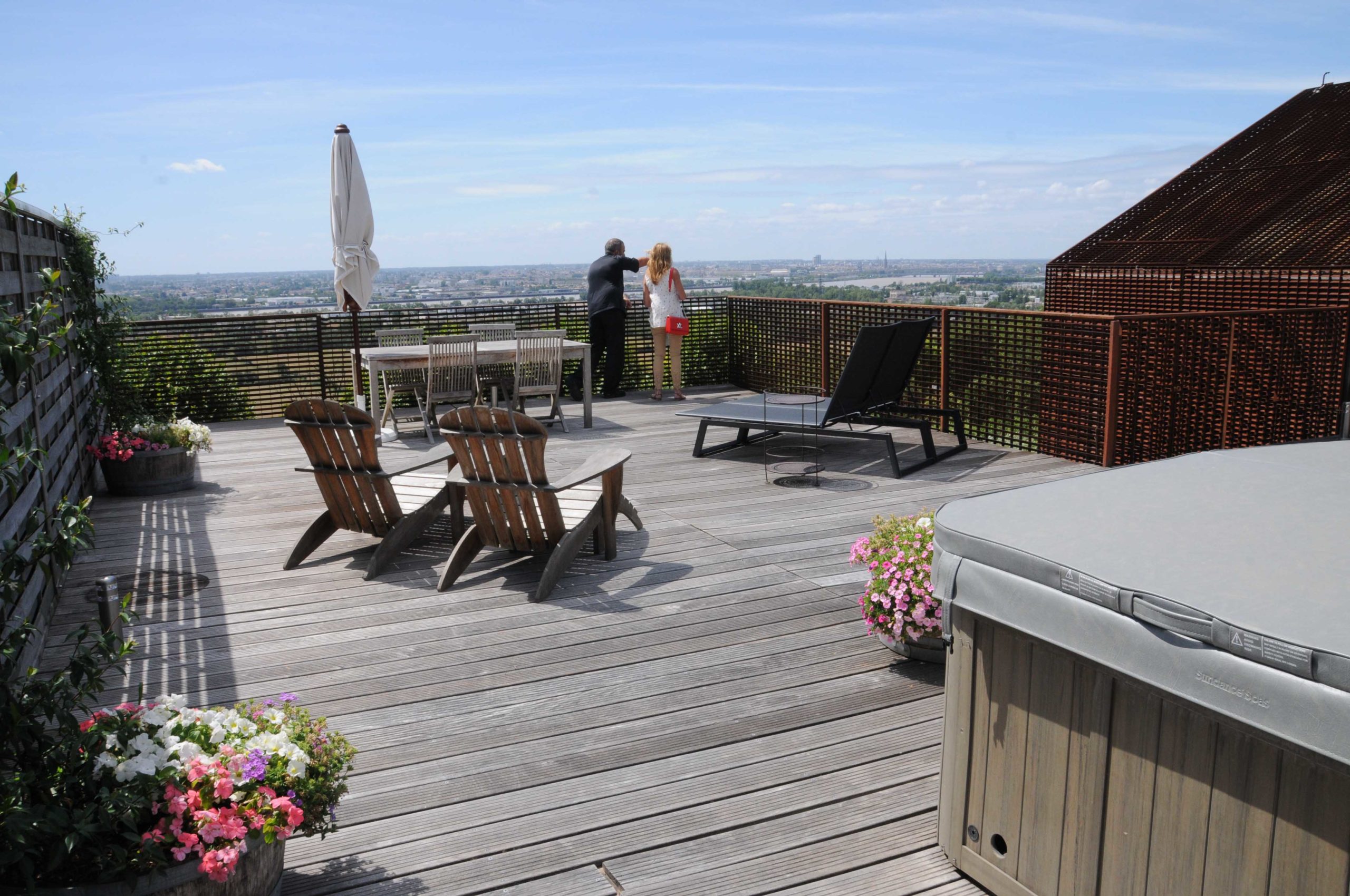 … ou la Suite « Jacuzzi » avec son Jacuzzi privé et son immense terrasse en teck bénéficiant d’une vue exceptionnelle sur Bordeaux et la Garonne :