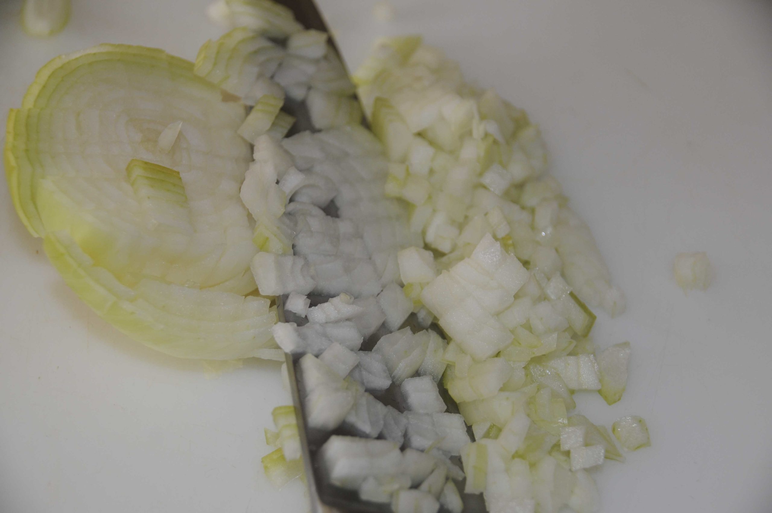 Velouté d’oignons: Faire suer les 2 oignons dans le beurre fondu; ajouter les lardons et la pomme de terre coupée en dés. Verser le bouillon et cuire pendant 20 minutes. Mixer finement, ajouter la crème et mixer de nouveau (vérifier l’assaisonnement et ajuster avec du bouillon si nécessaire)