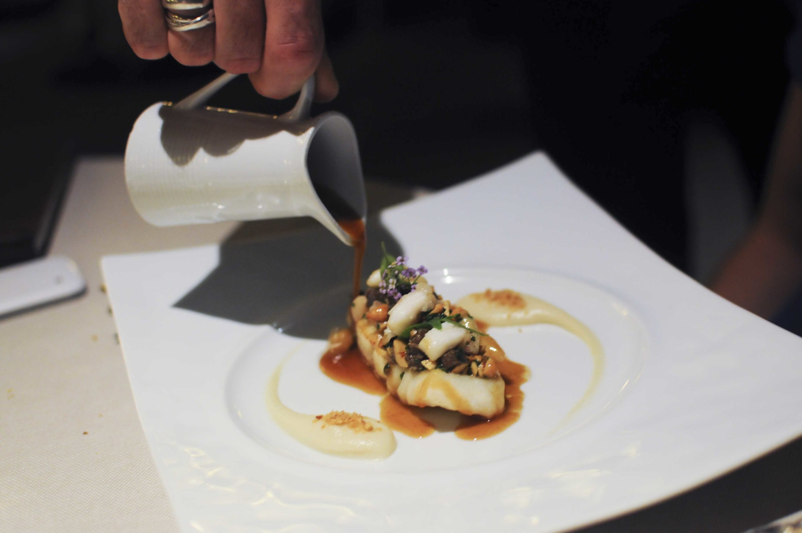 Une cuisine de contraste où chaque chose a son importance sans laisser place au superflu; la moelle de boeuf apporte un léger côté gras qui va si bien au turbot, on apprécie la texture lisse et soyeuse de la purée de topinambour, et la truffe trouve sa place sans aucune difficulté… tout simplement magique!