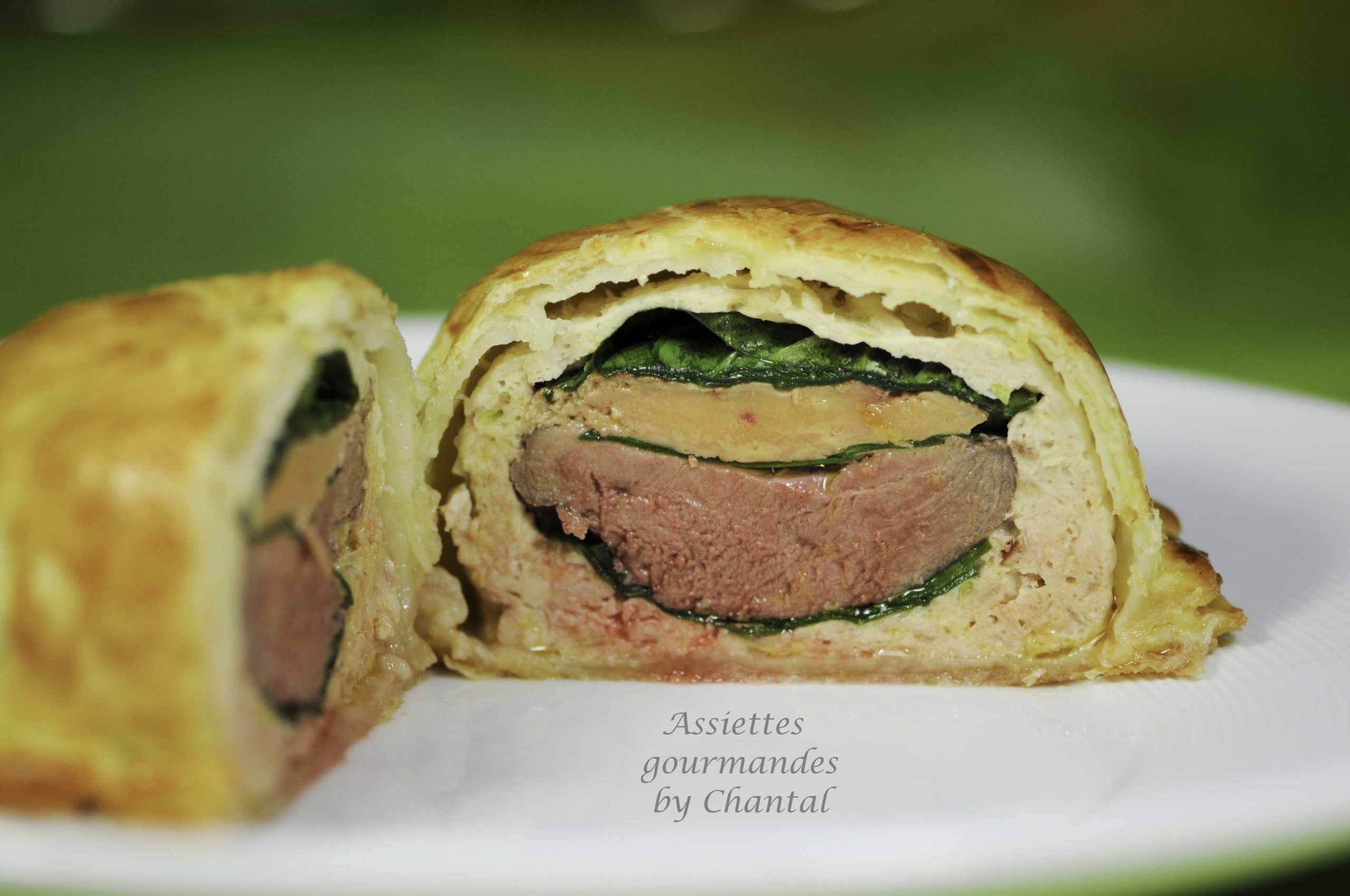 Placer un cercle à pâtisserie sur la pâte feuilletée; tapisser le fond et les côtés d’une fine couche de farce. Déposer 2 feuilles d’épinard, un filet de pigeon, un morceau de foie gras, un peu de farce et de nouveau des feuilles d’épinard.
