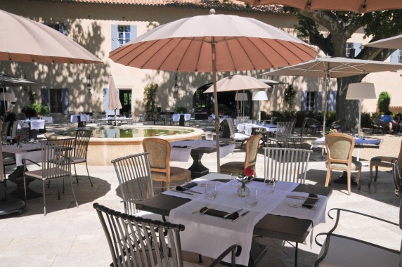 L’été, il est possible de dîner sur la superbe terrasse dans la cour intérieure, à l’ombre des platanes, un espace à l’ambiance des Mas provençaux. Près de la fontaine et avec la piscine en fond de scène, le cadre est planté ^_^