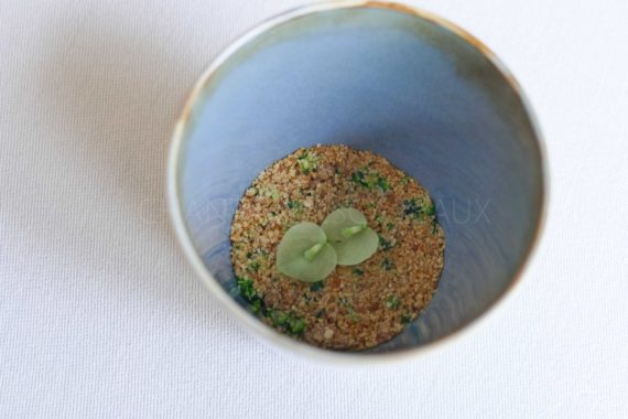 Gomasio de bonite et brocoli; croustillant de lisette snackée, émulsion anchois et parmesan
