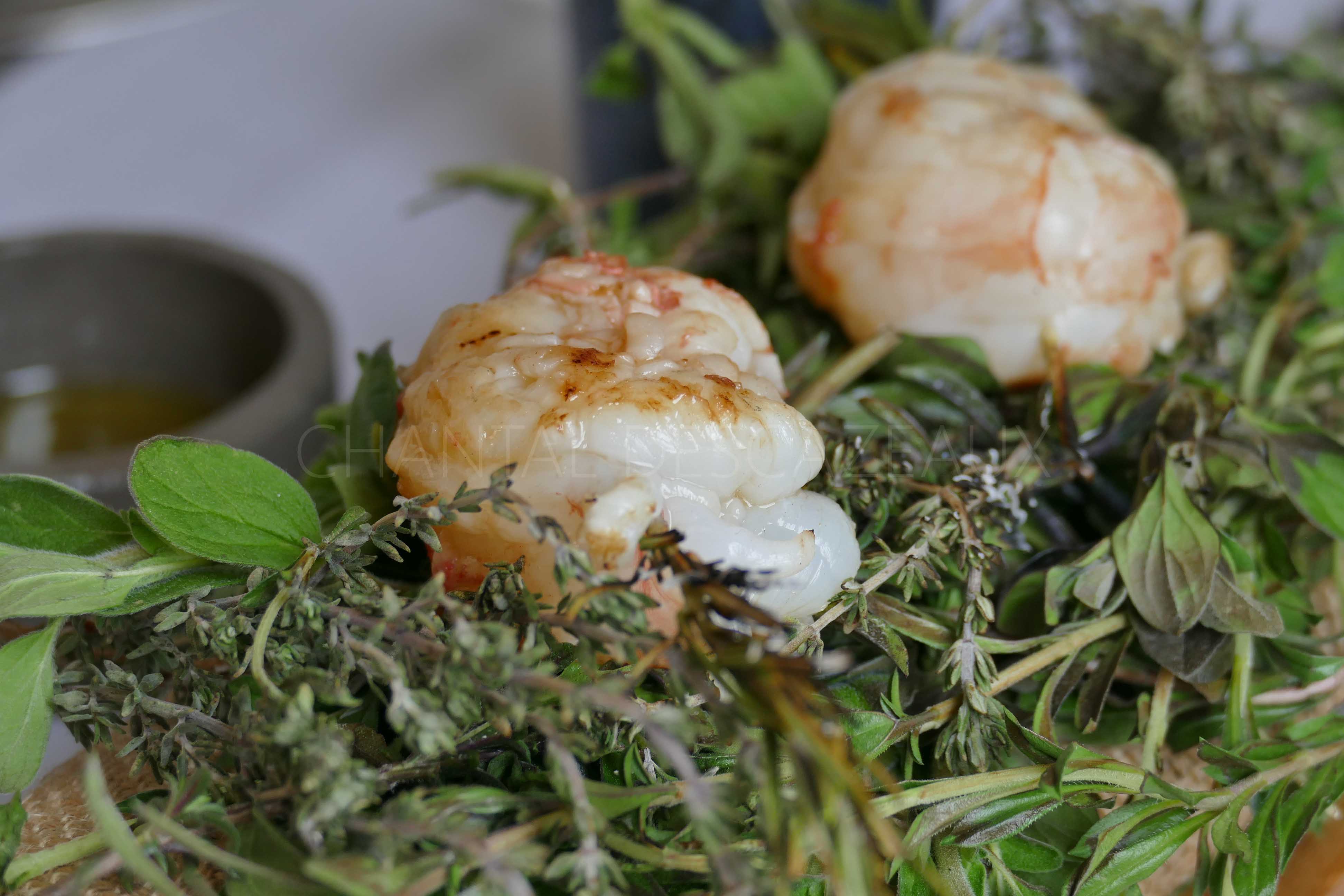 Langoustines de Méditerrannée grillée au beurre d’agrume et émulsion au navet: léger goût fumé, chair nacrée, puissance du navet, les yeux pétillent, on se régale.