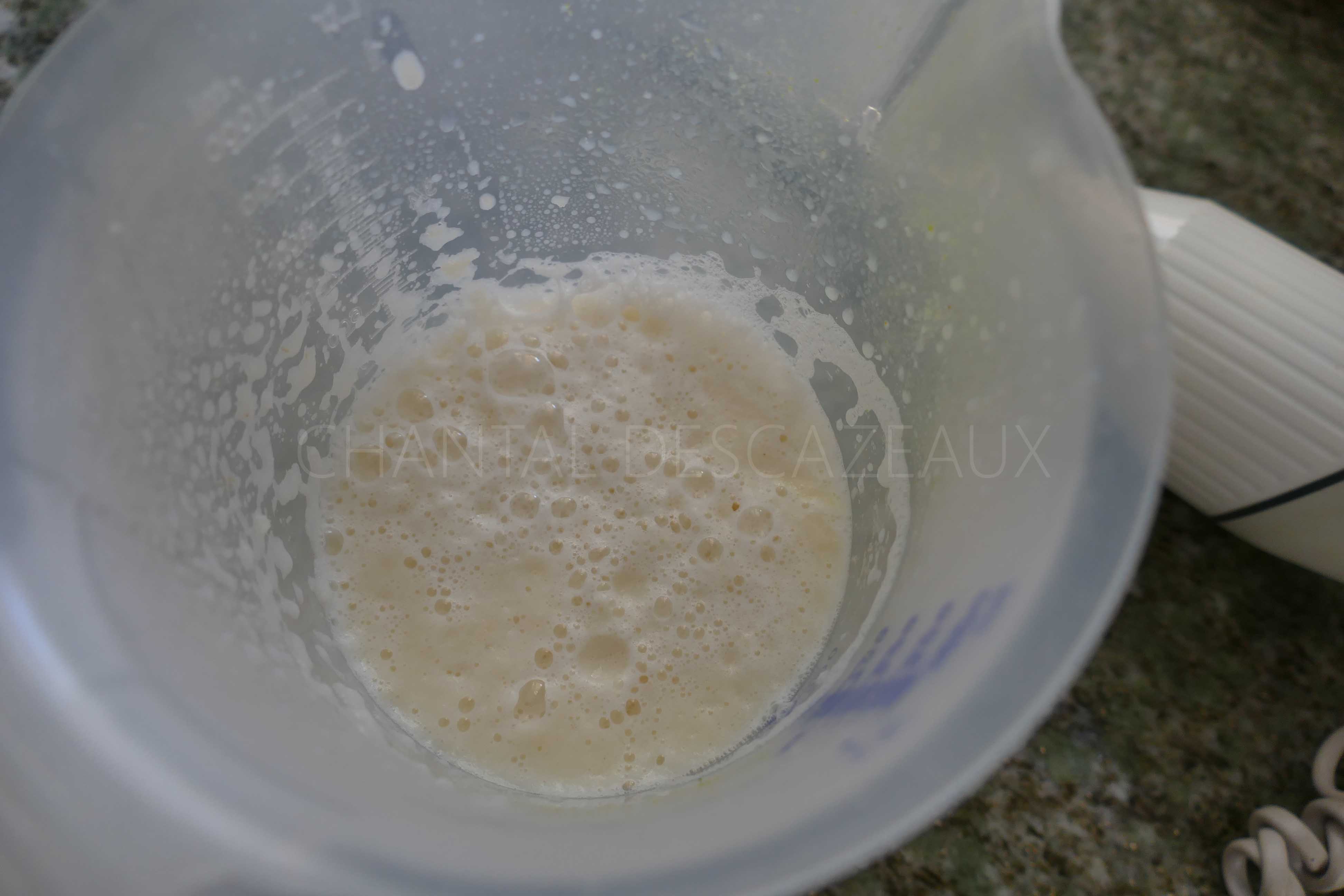 Emulsionner de nouveau le lait de céleri et verser autour des lentilles.