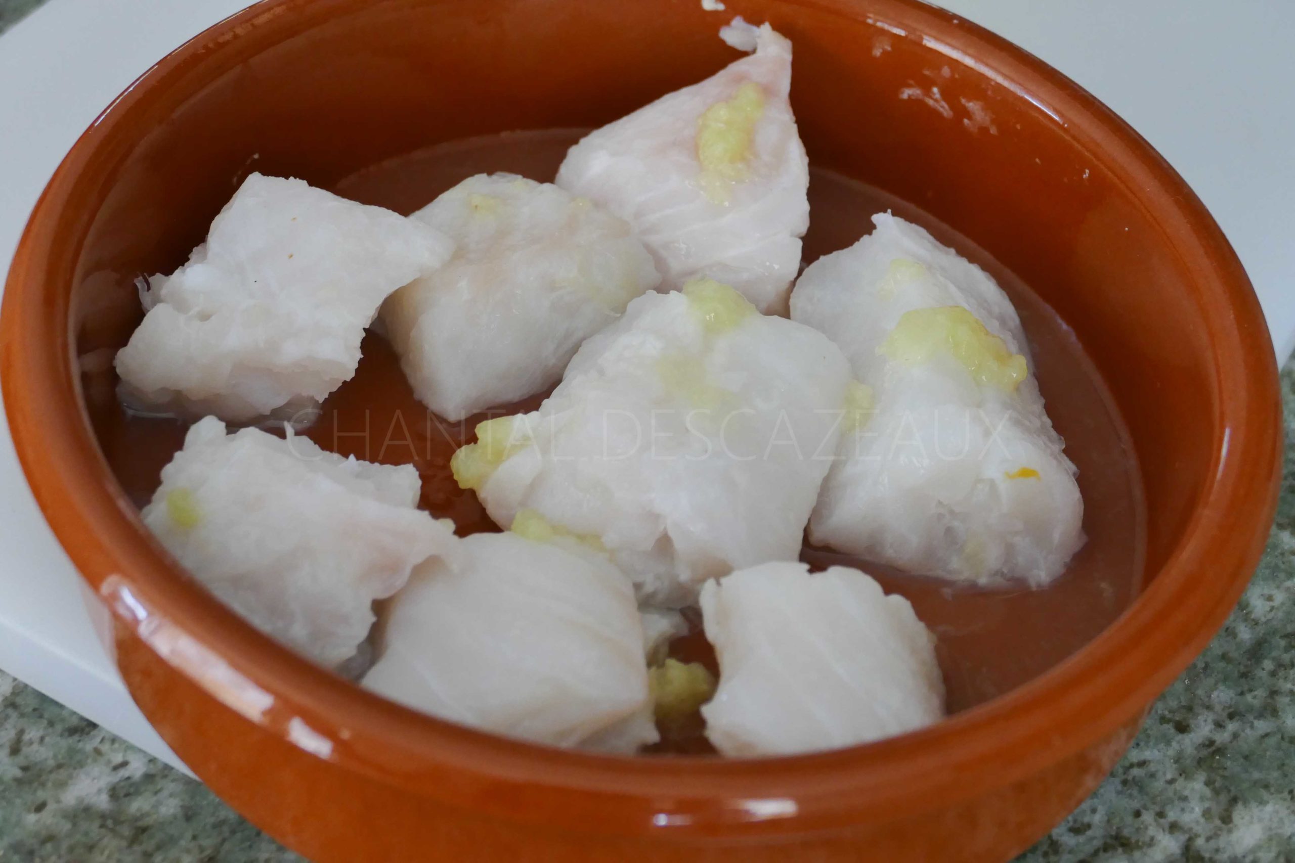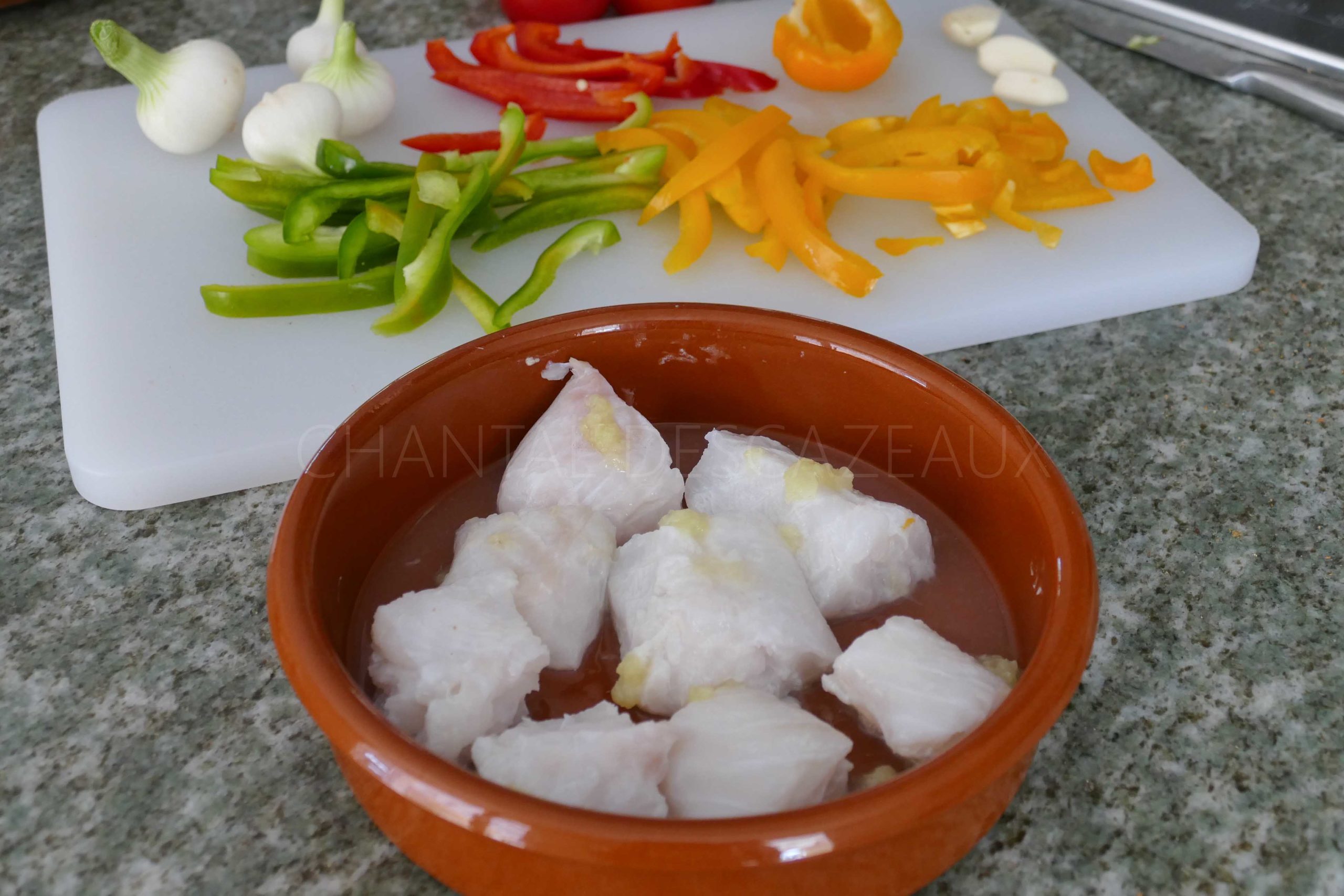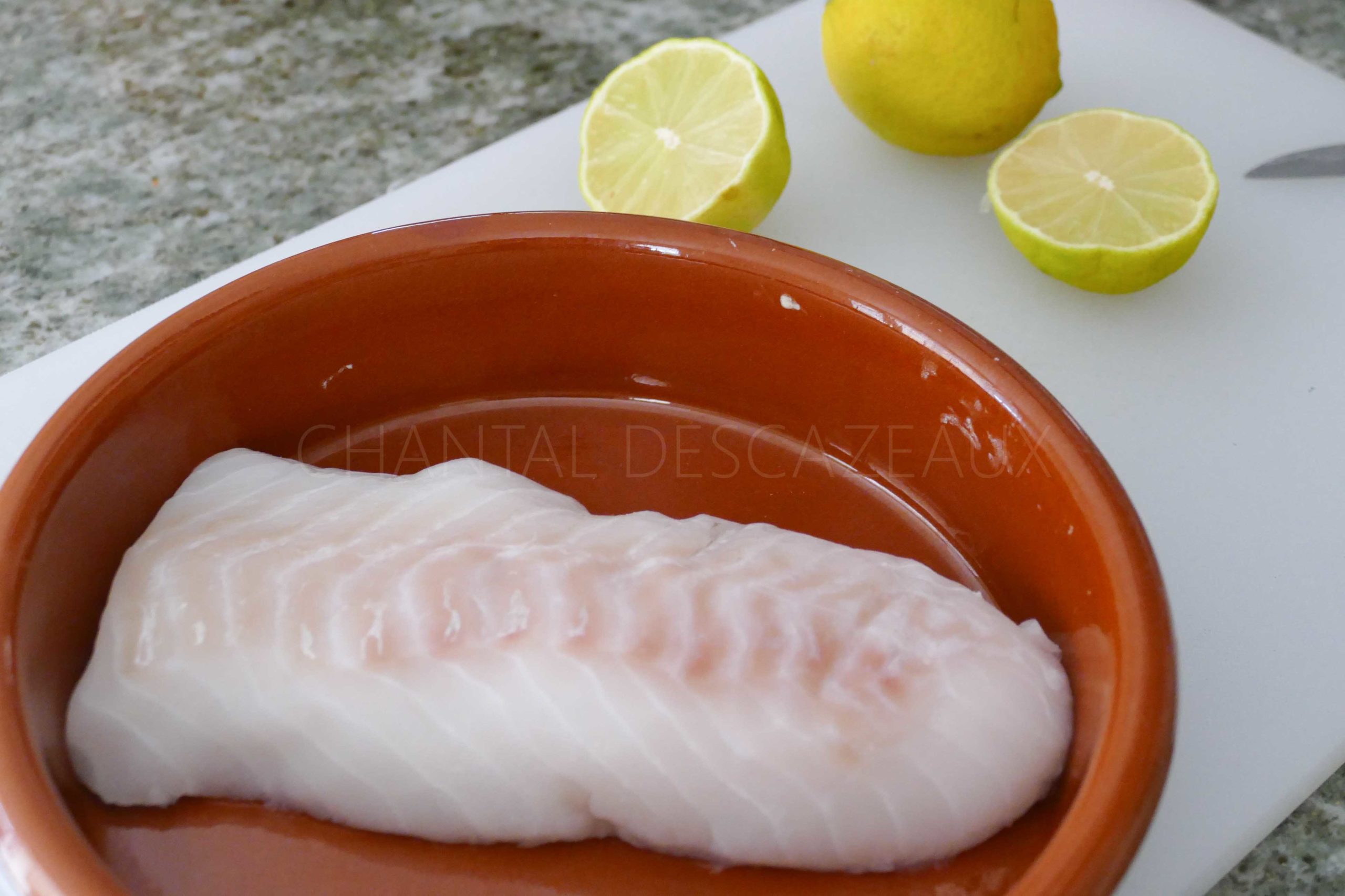 Couper le poisson en morceaux et déposer dans un plat. Arroser de jus de citrons verts, saler, poivrer et laisser mariner 30 minutes environ.