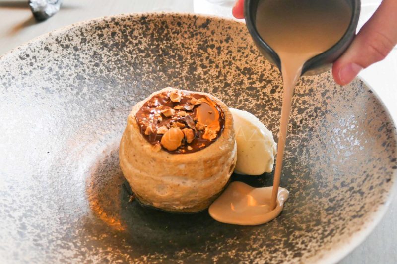 La noisettine du Médoc en soufflé, glace vanille fumée