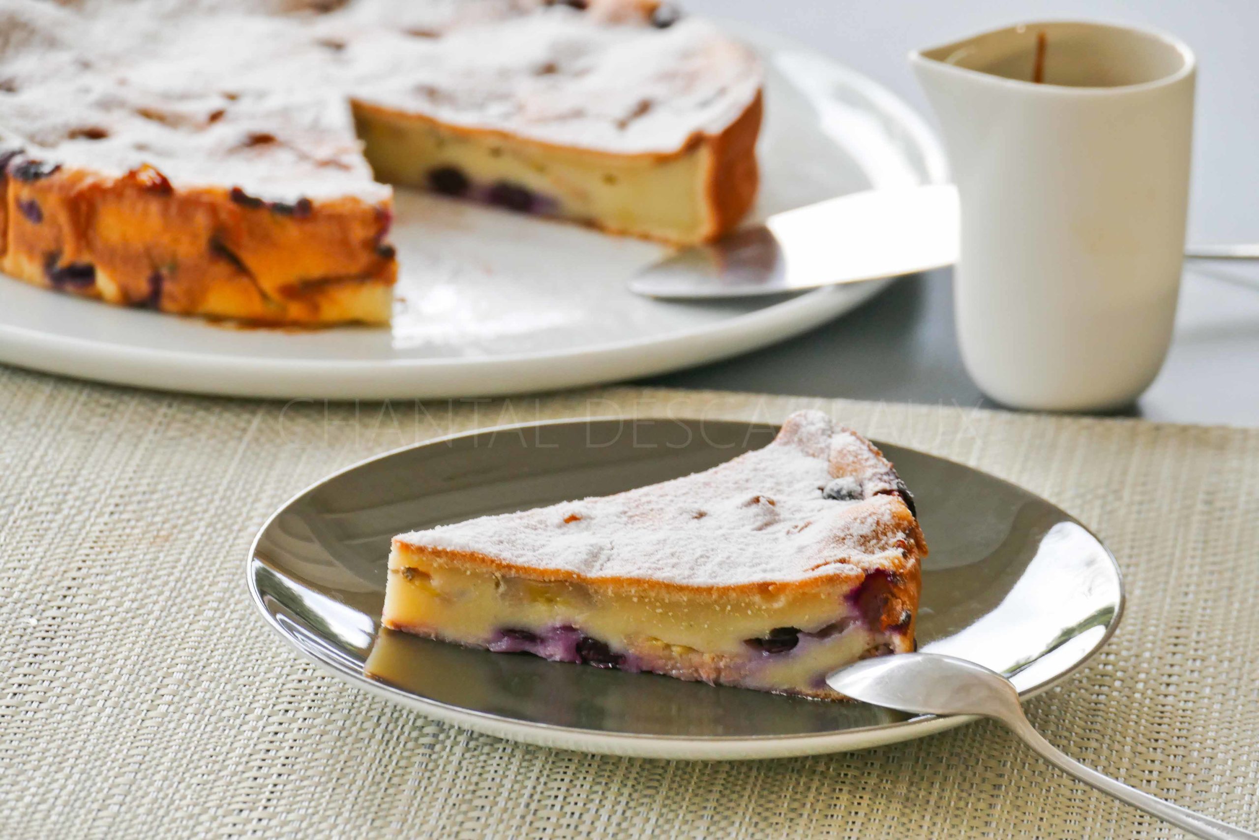 Clafoutis bananes myrtilles et lait de coco