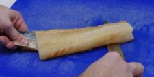 Faire de même avec les filets d’anguille, les 3 éléments doivent avoir la même longueur.