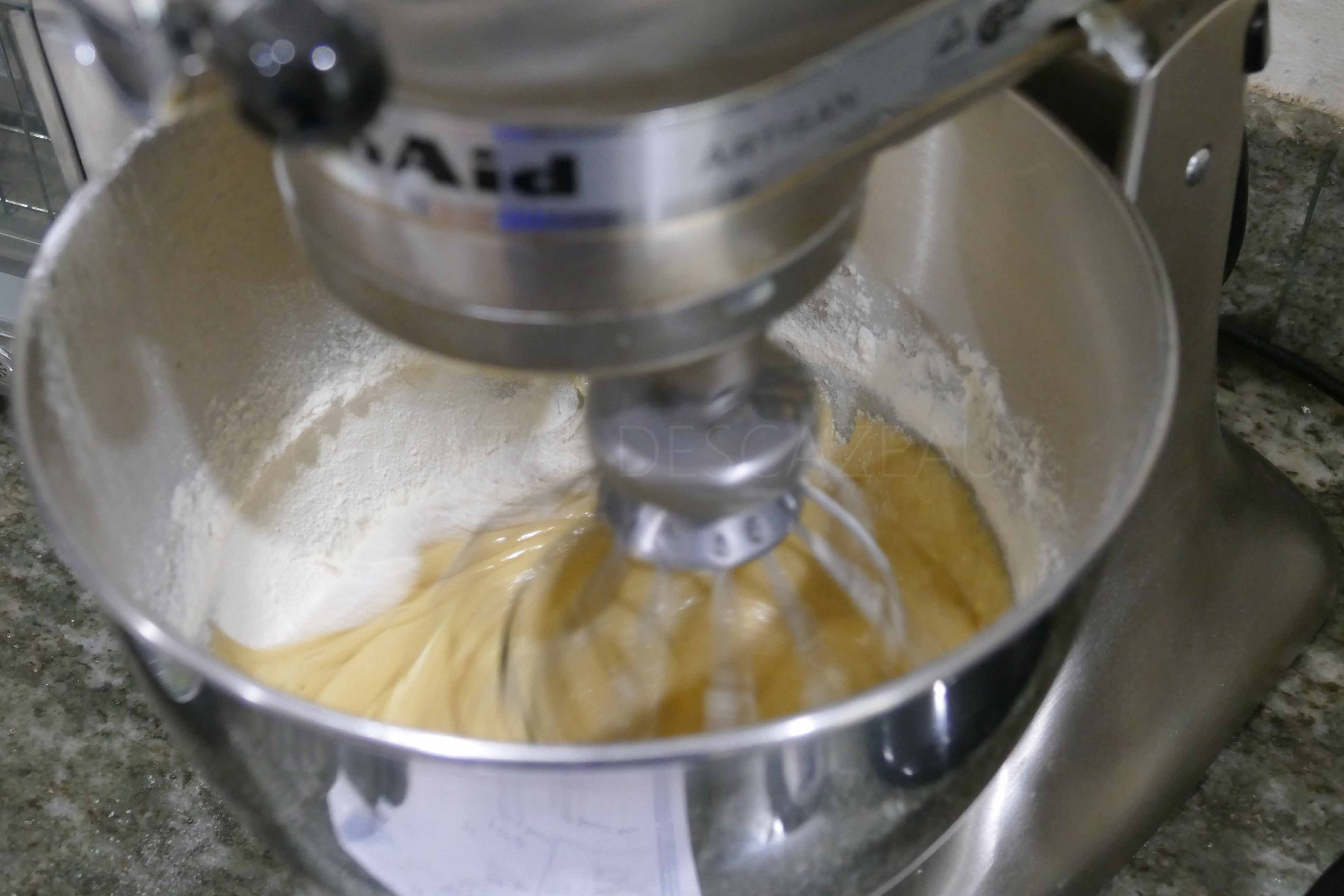 Au bout de 15 minutes de cuisson, fendre la partie supérieure du cake avec un couteau beurré (sans toucher les extrémités) pour qu’il se développe de façon harmonieuse.